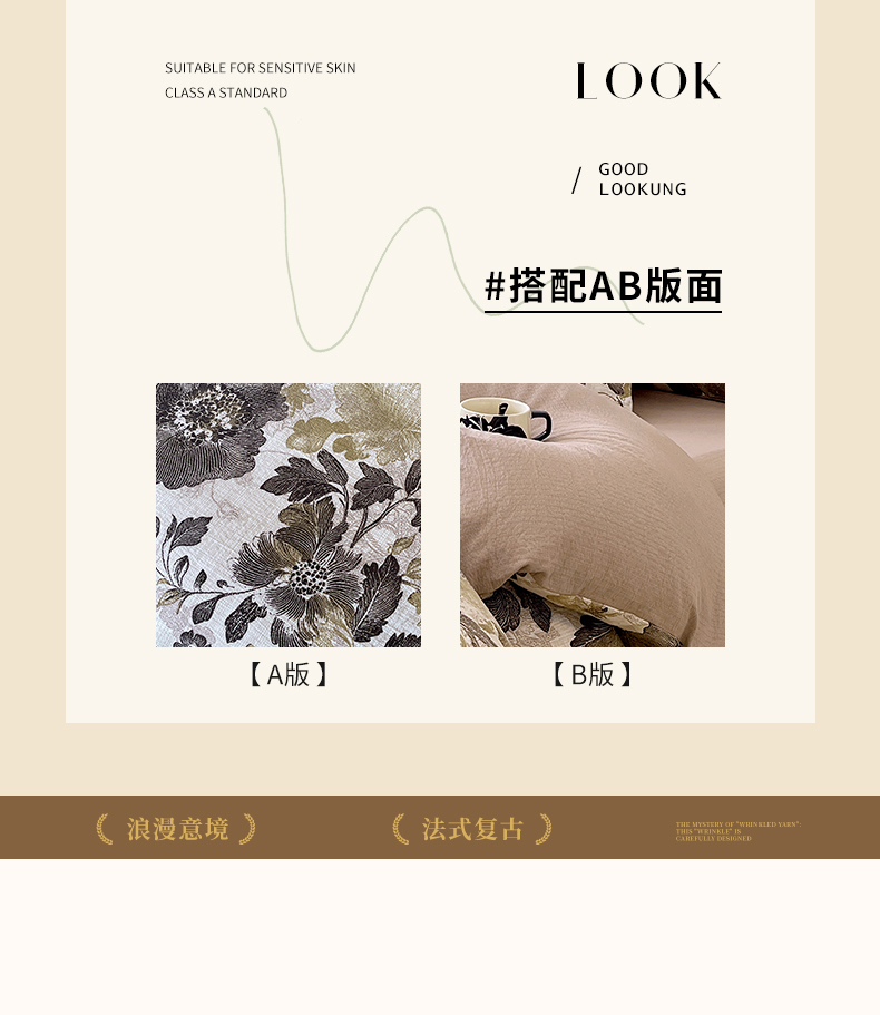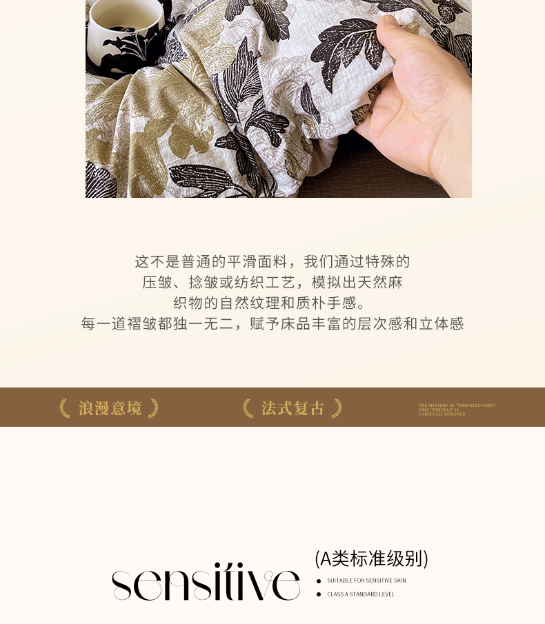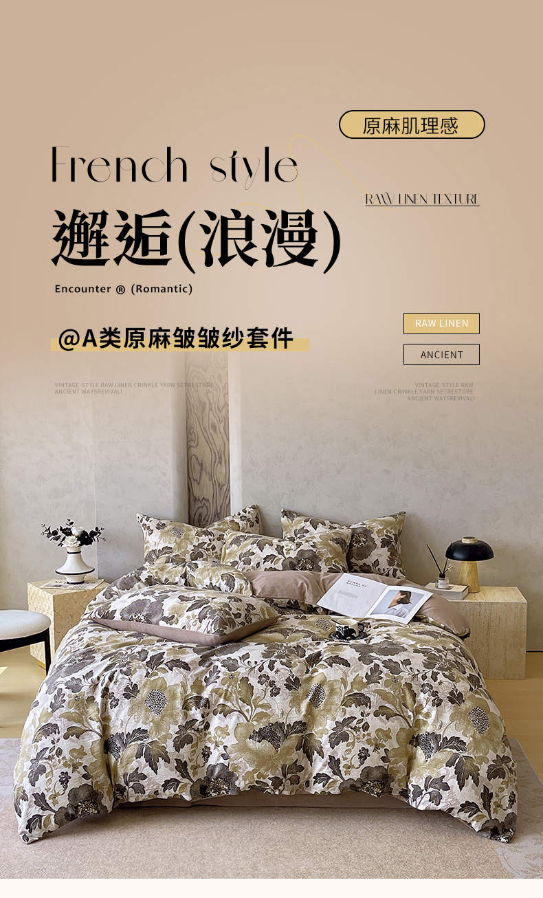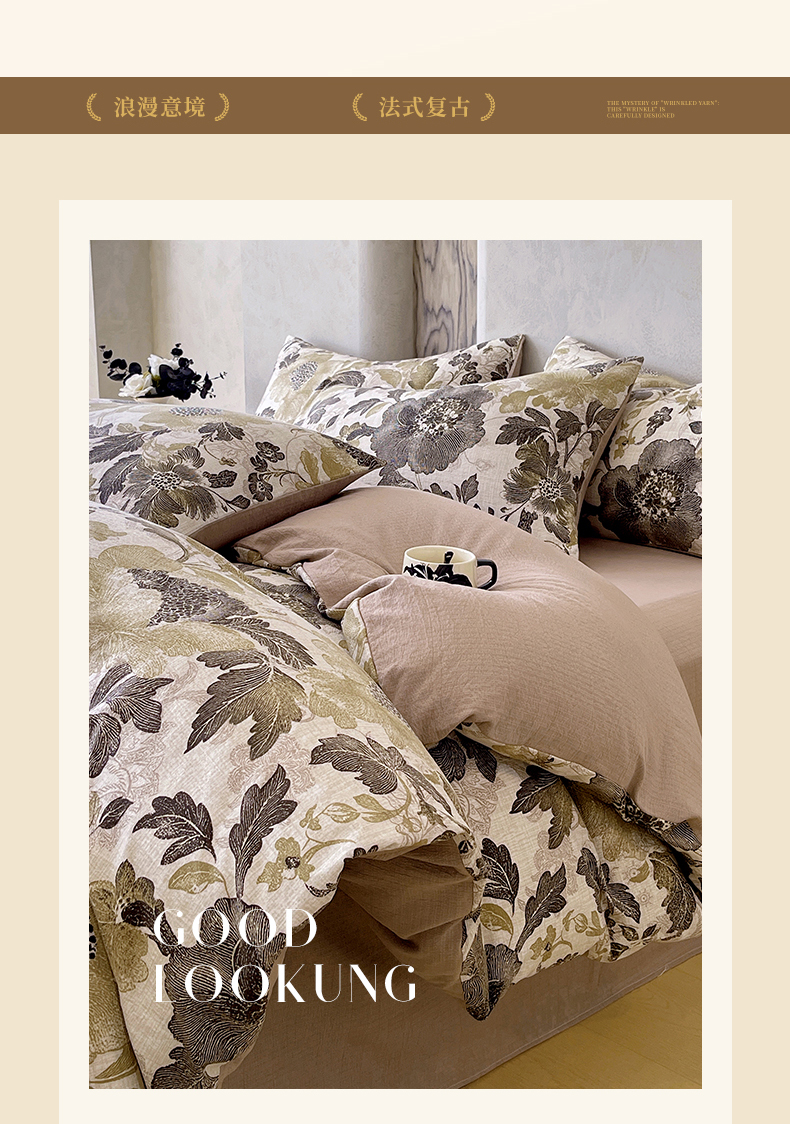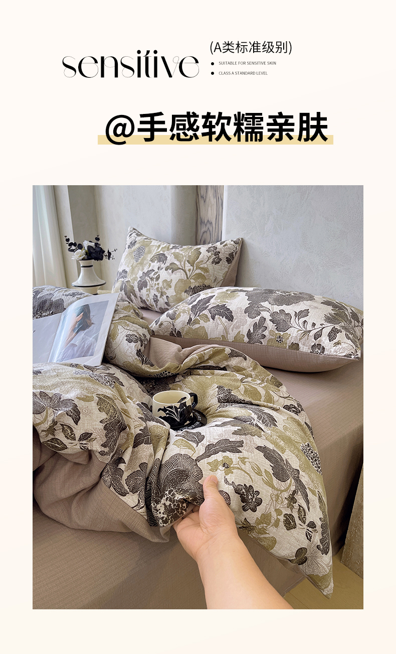 当前位置: 91家纺网 > 商品网购 > 床品套件 > 四件套 > 其它四件套 > 宝士康家纺 2025秋冬新品高克重A类原麻暗合四件套复古加厚双层纱仿亚麻套件 墨蕊