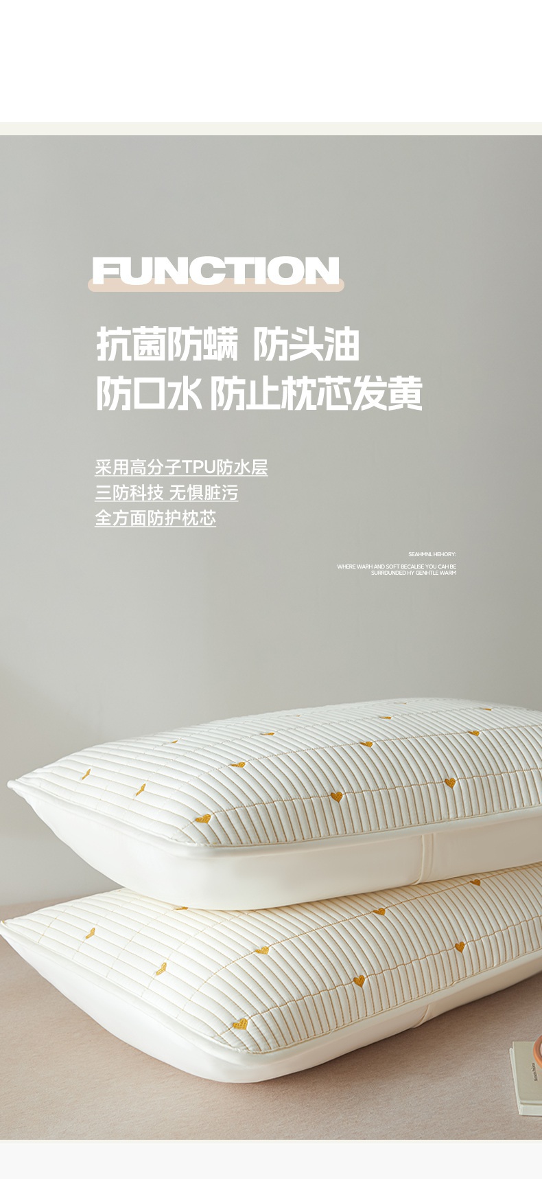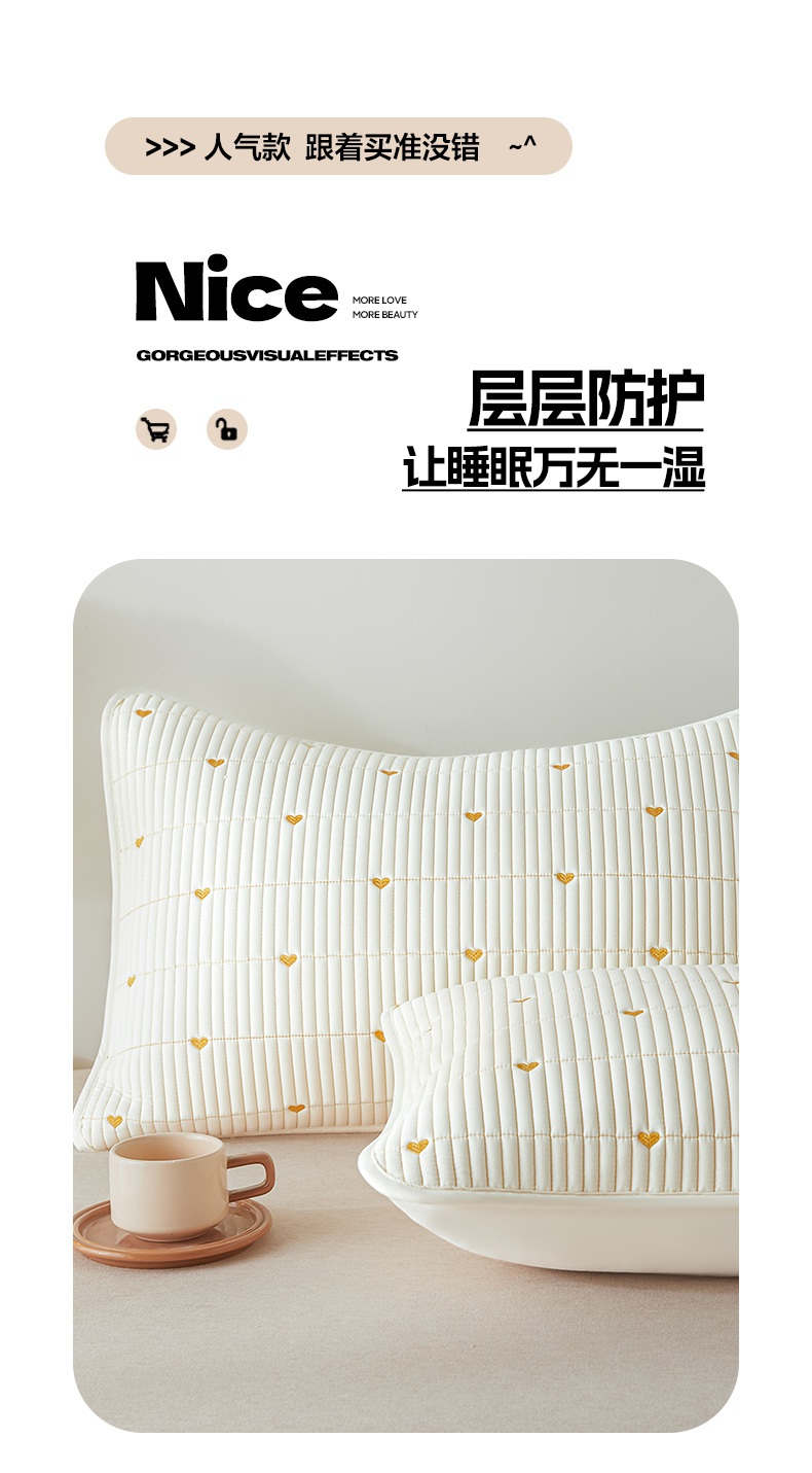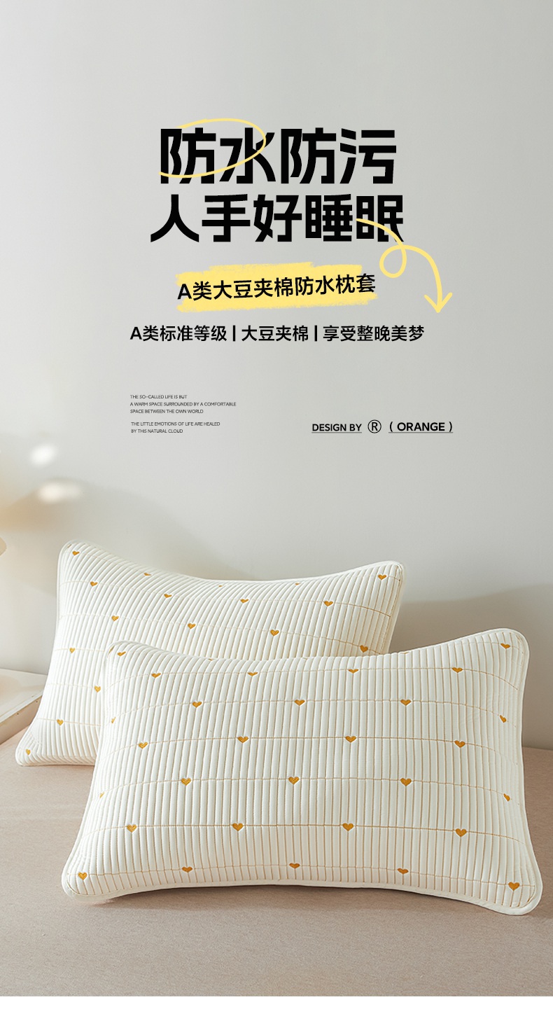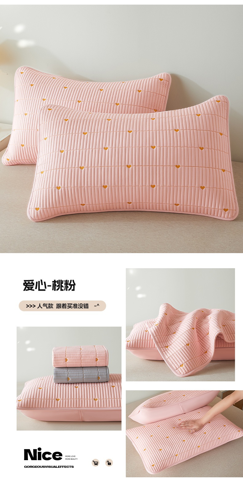 芬晴家纺 2025新款防水枕套-繁星-爱心-简爱-空间 爱心-粉+灰