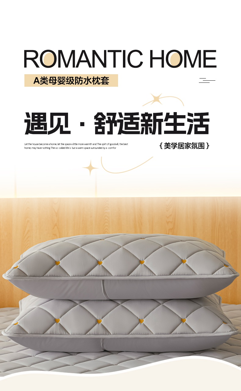 芬晴家纺 2025新款防水枕套-繁星-爱心-简爱-空间 简爱-星灰