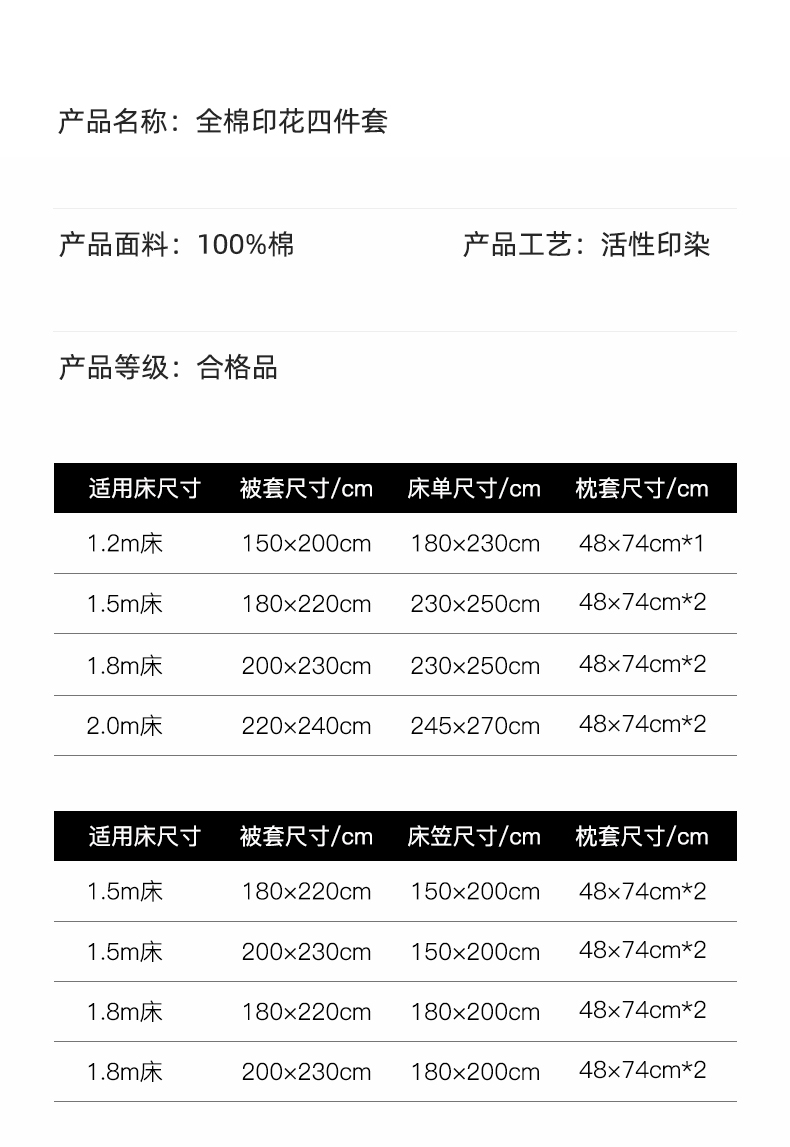 1.8m床笠款四件套-被套200*230 | ¥115.00 |