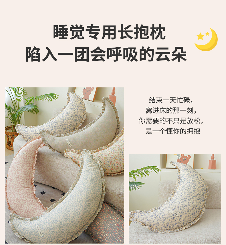 (总)蔻眠 棉麻花边款多功能月亮长抱枕夹腿抱枕芯月亮枕头,主图,棉麻月亮-碎花,棉麻月亮-光年,棉麻月亮-秘境,棉麻月亮-花簇,棉麻月亮-森屿,棉麻月亮-南栀