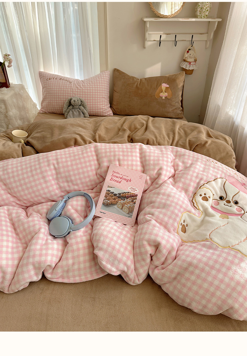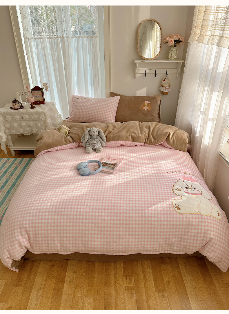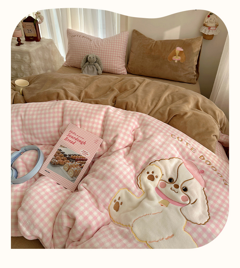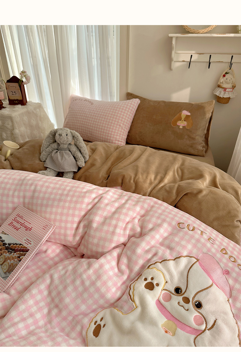 当前位置: 91家纺网 > 商品网购 > 床品套件 > 四件套 > 牛奶绒四件套 > 韩都家居 2025新款卡通贴布绣系列加厚牛奶绒四件套 绅士小狗