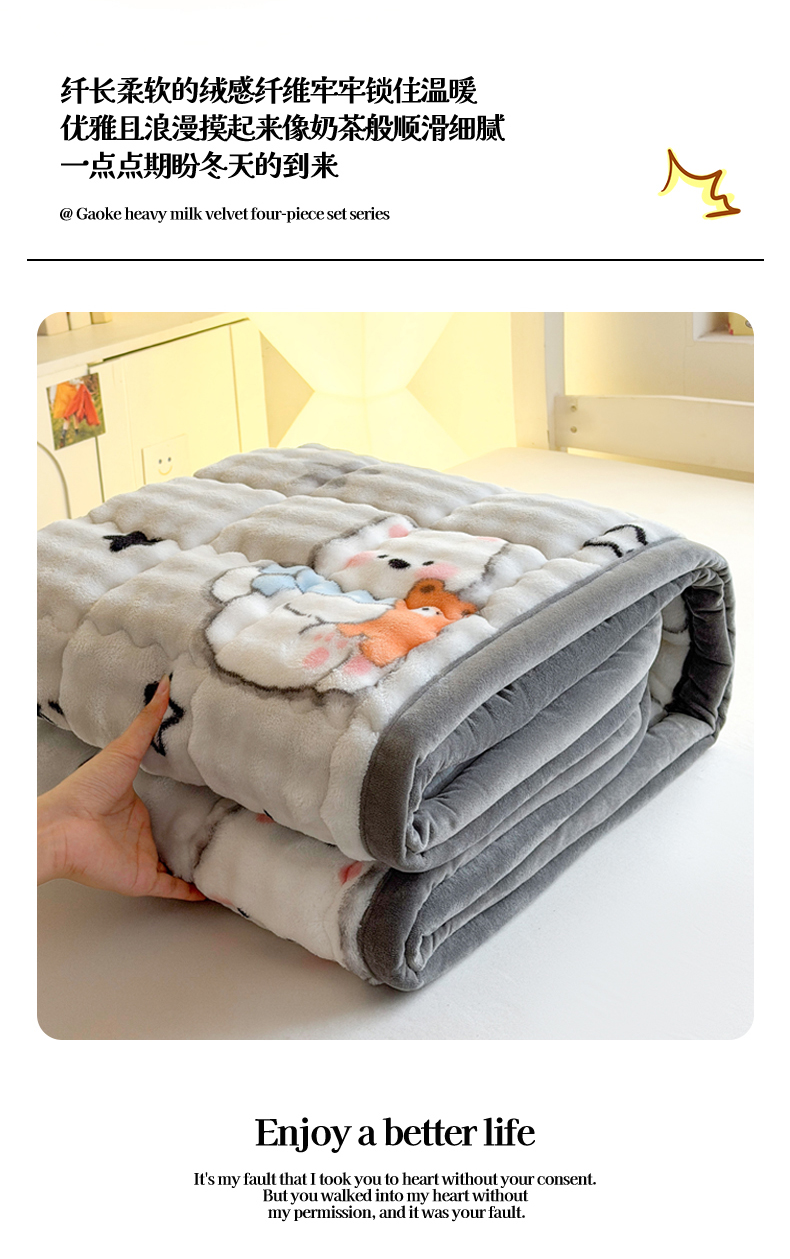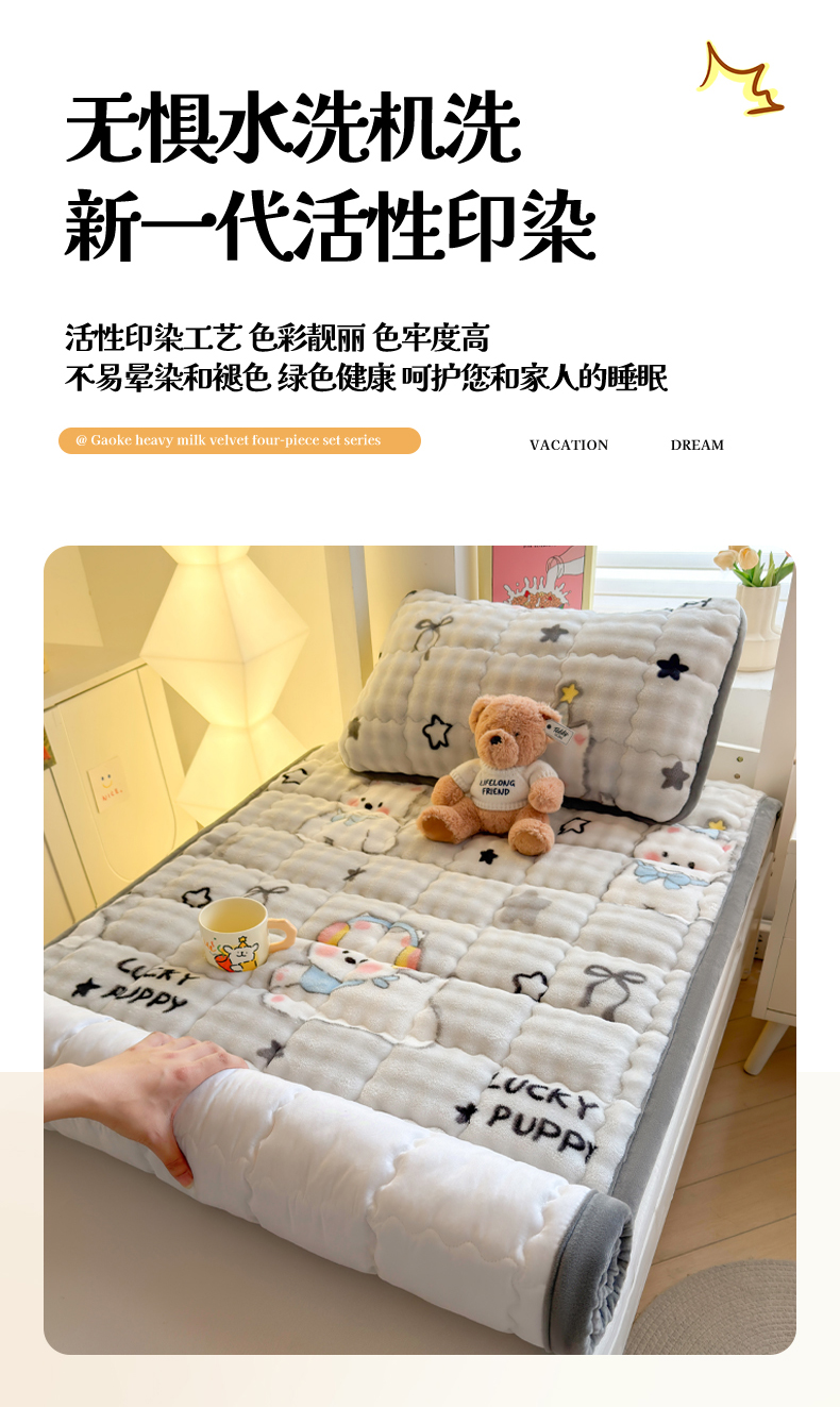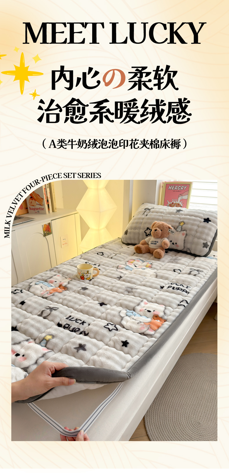 (总)奇丝雅 2025新款A类牛奶绒泡泡绒床褥床垫床盖兔毛绒家用学生宿舍上下铺寝室褥子软垫床护垫夹棉(大床)场景二,星星猫咪,月亮湾,趴趴狗,繁星,爱心咖,樱桃猫咪,幻影灰,暖绒蓝,清新绿,柔和蓝