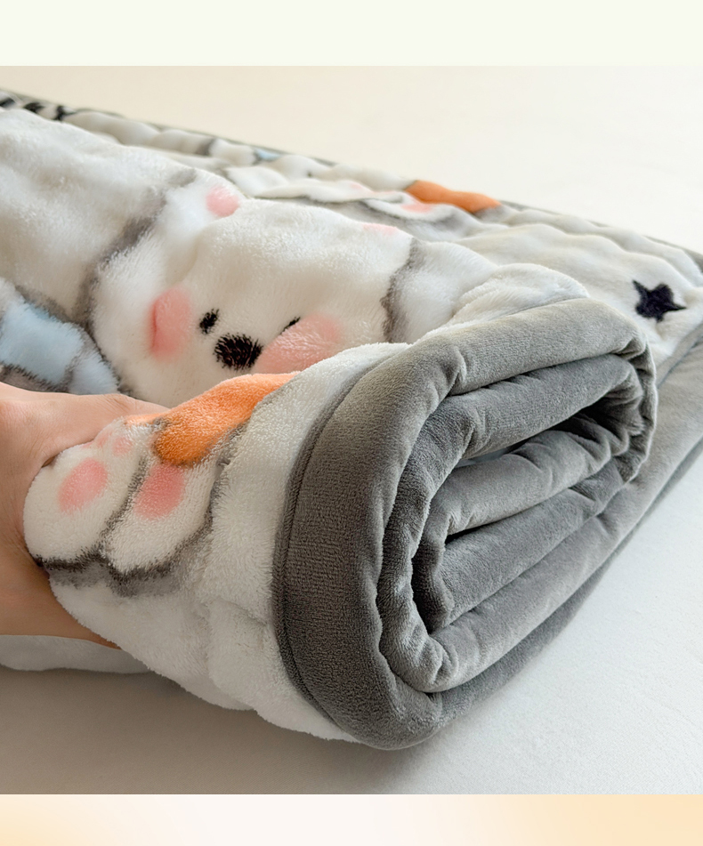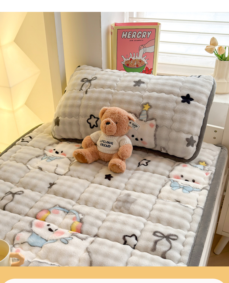 商品名称:奇丝雅 2025新款A类牛奶绒泡泡绒床褥床垫床盖兔毛绒家用学生宿舍上下铺寝室褥子软垫床护垫夹棉(学生床) 星星猫咪