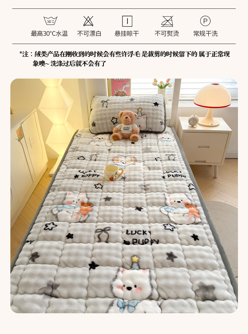 (总)奇丝雅 2025新款A类牛奶绒泡泡绒床褥床垫床盖兔毛绒家用学生宿舍上下铺寝室褥子软垫床护垫夹棉(学生床),爱心咖,繁星,幻影灰,暖绒蓝,趴趴狗,清新绿,柔和蓝,星星猫咪,樱桃猫咪,月亮湾