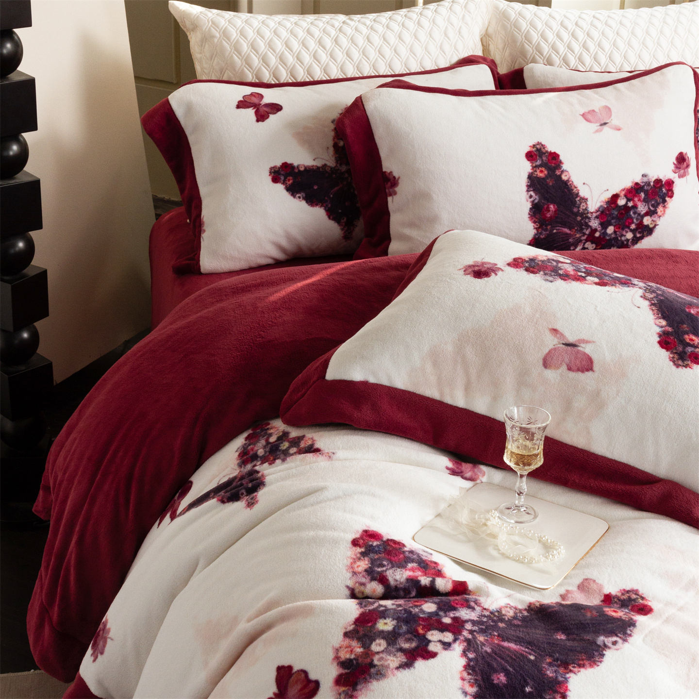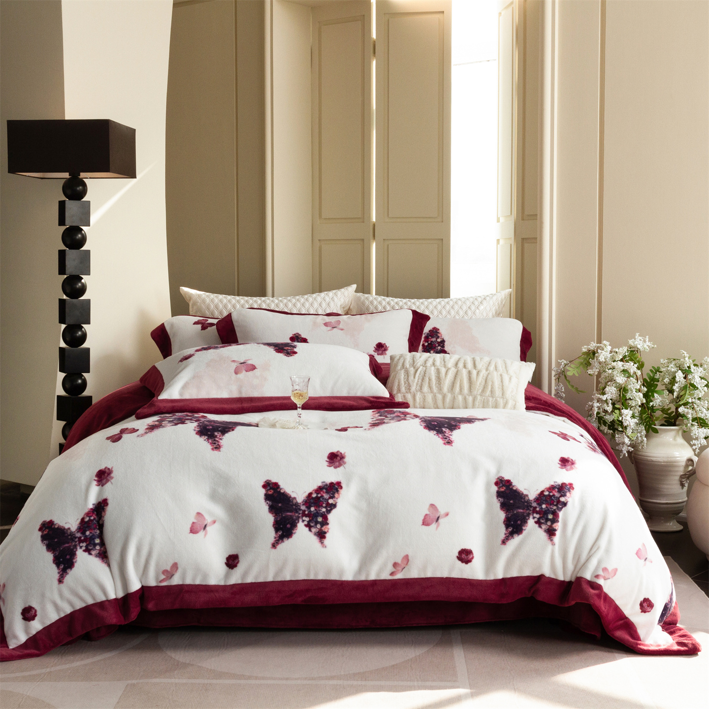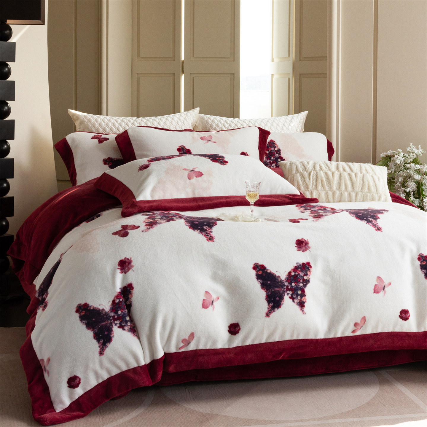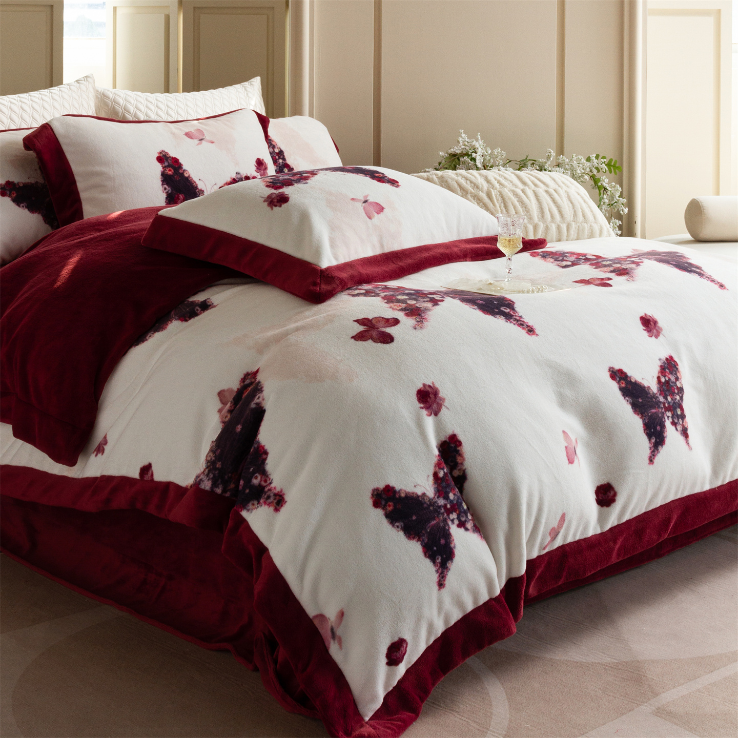 商品名称:馨蕊 2025新款意大利进口煦暖绒拼角工艺秋冬轻奢煦暖绒系列四件套-绒澜心 会员-10【券后控价338/358】 绒澜心-温莎红