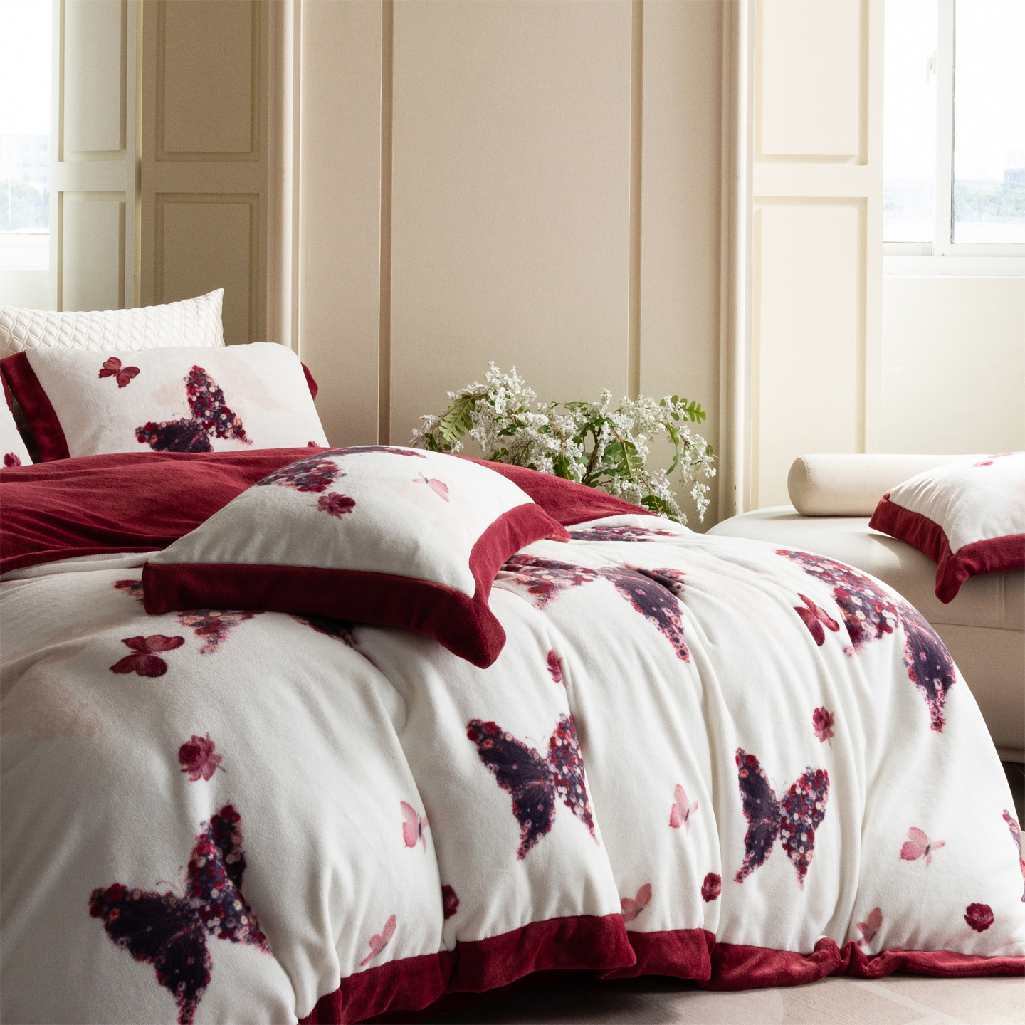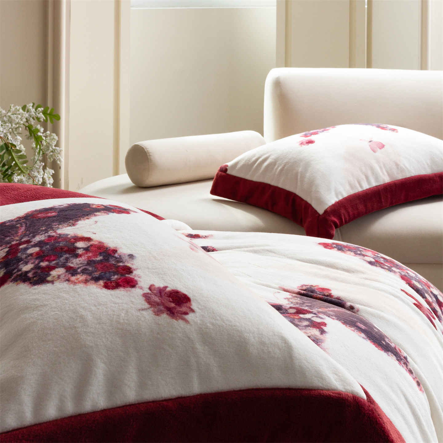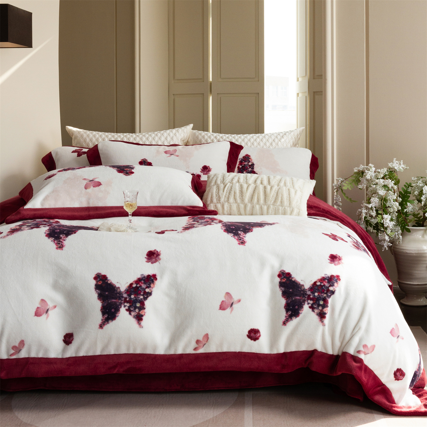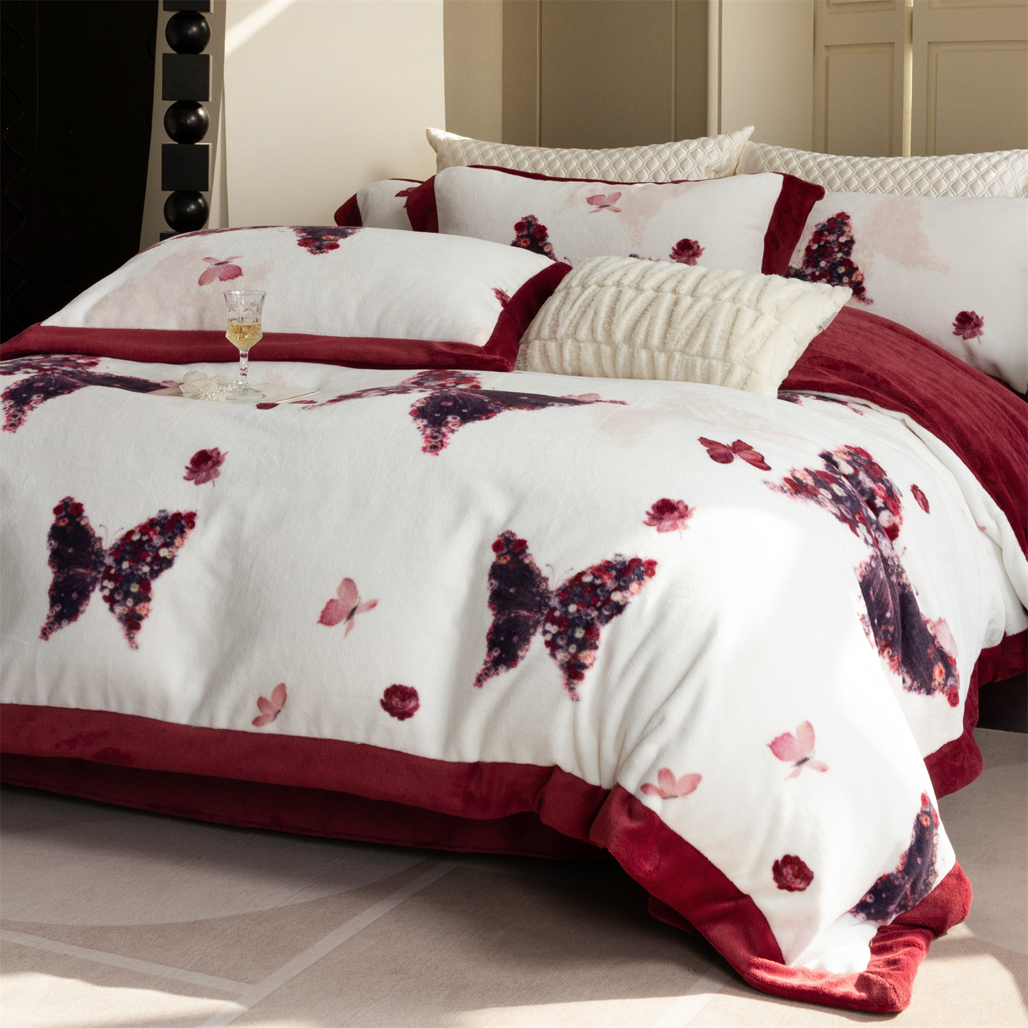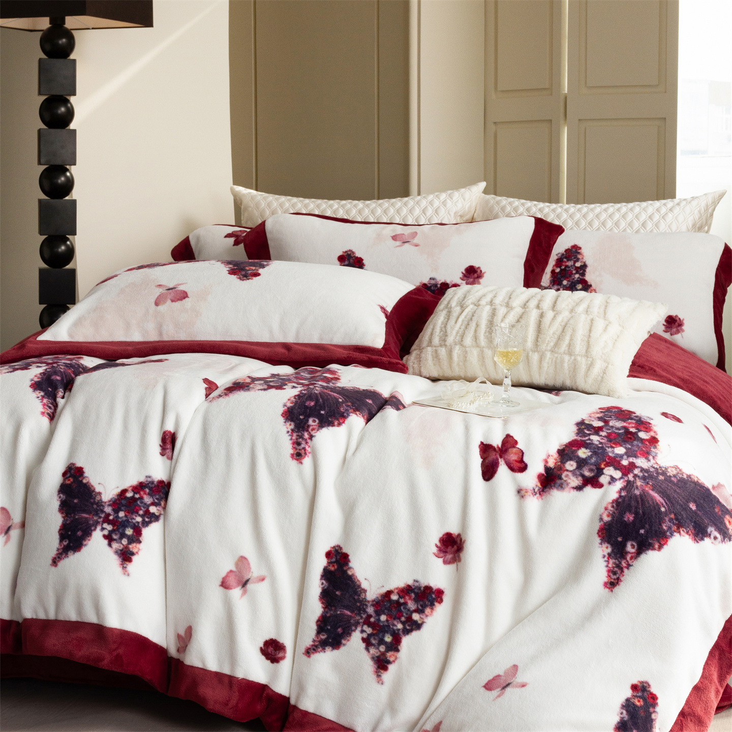 商品名称:馨蕊 2025新款意大利进口煦暖绒拼角工艺秋冬轻奢煦暖绒系列四件套-绒澜心 会员-10【券后控价338/358】 绒澜心-温莎红