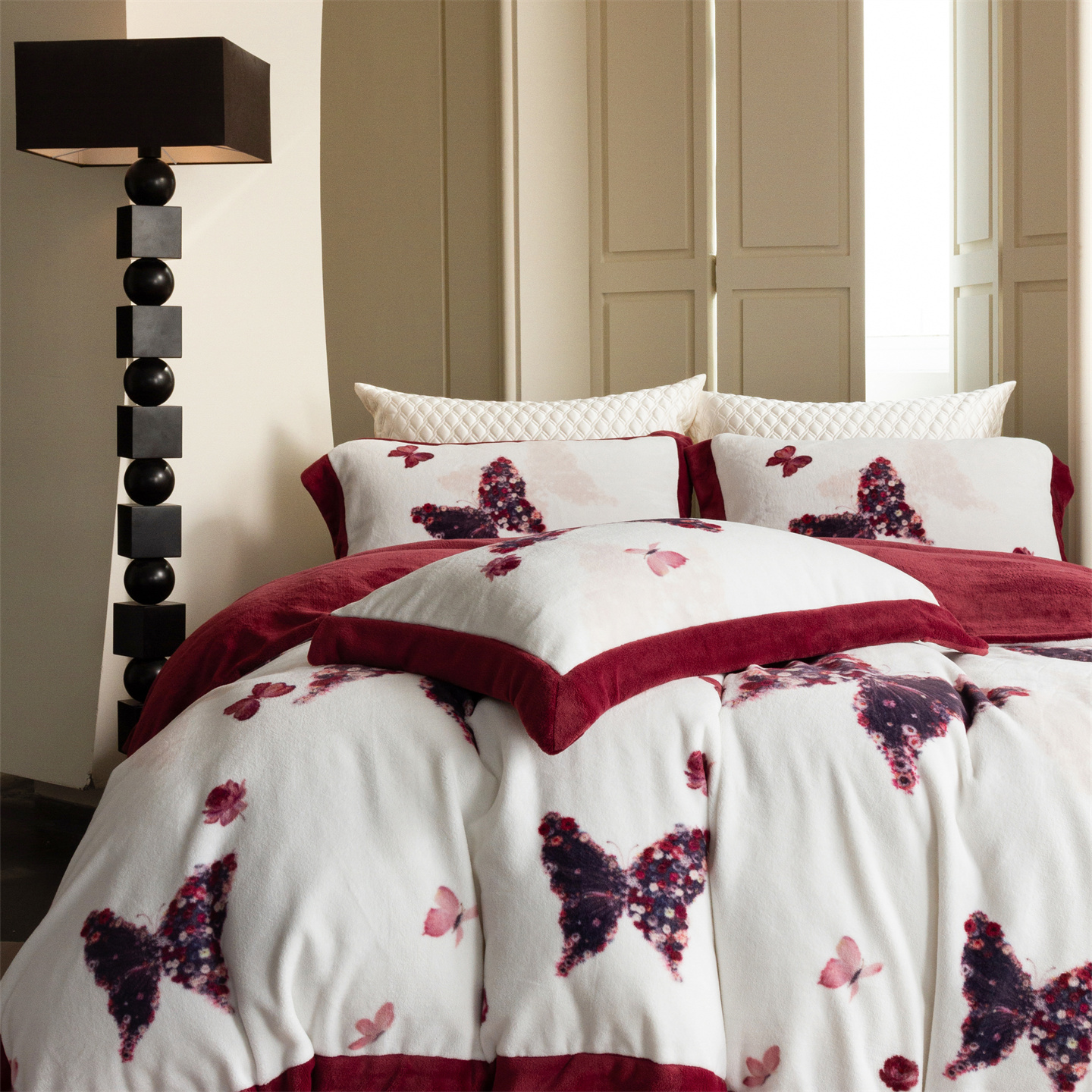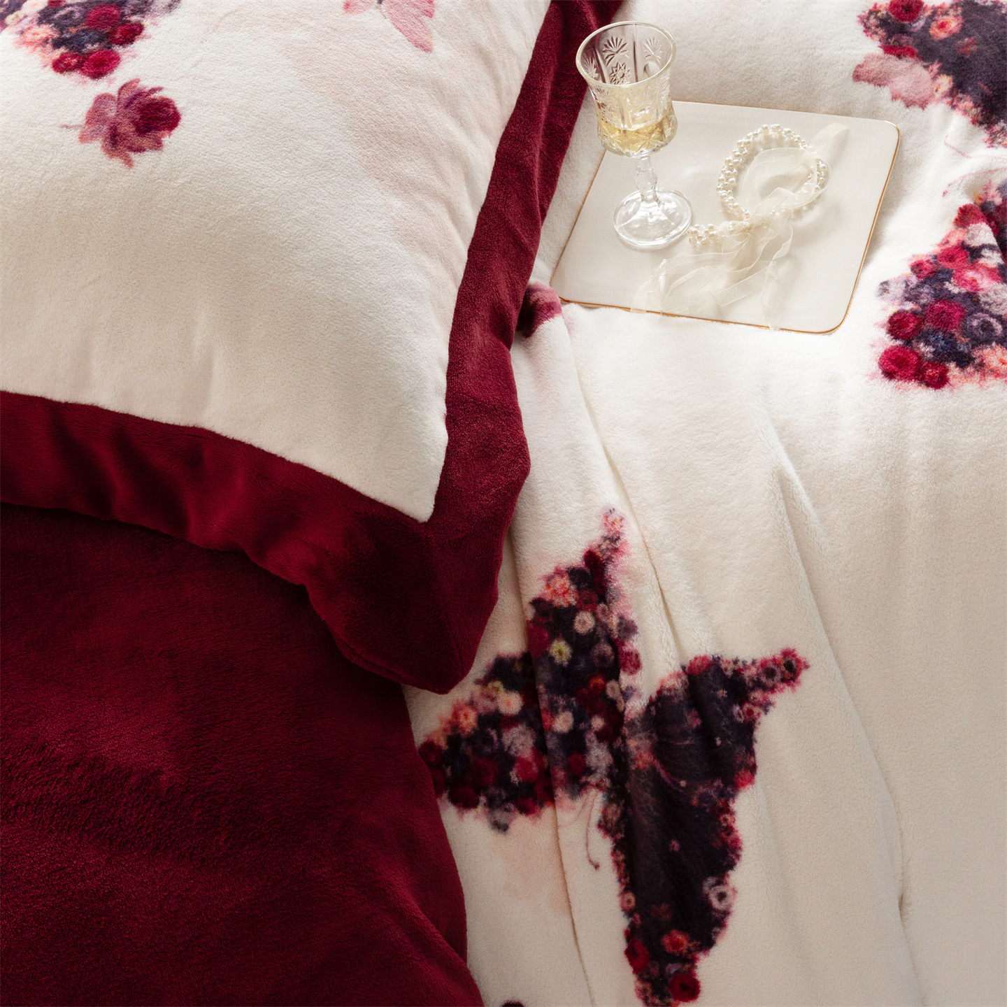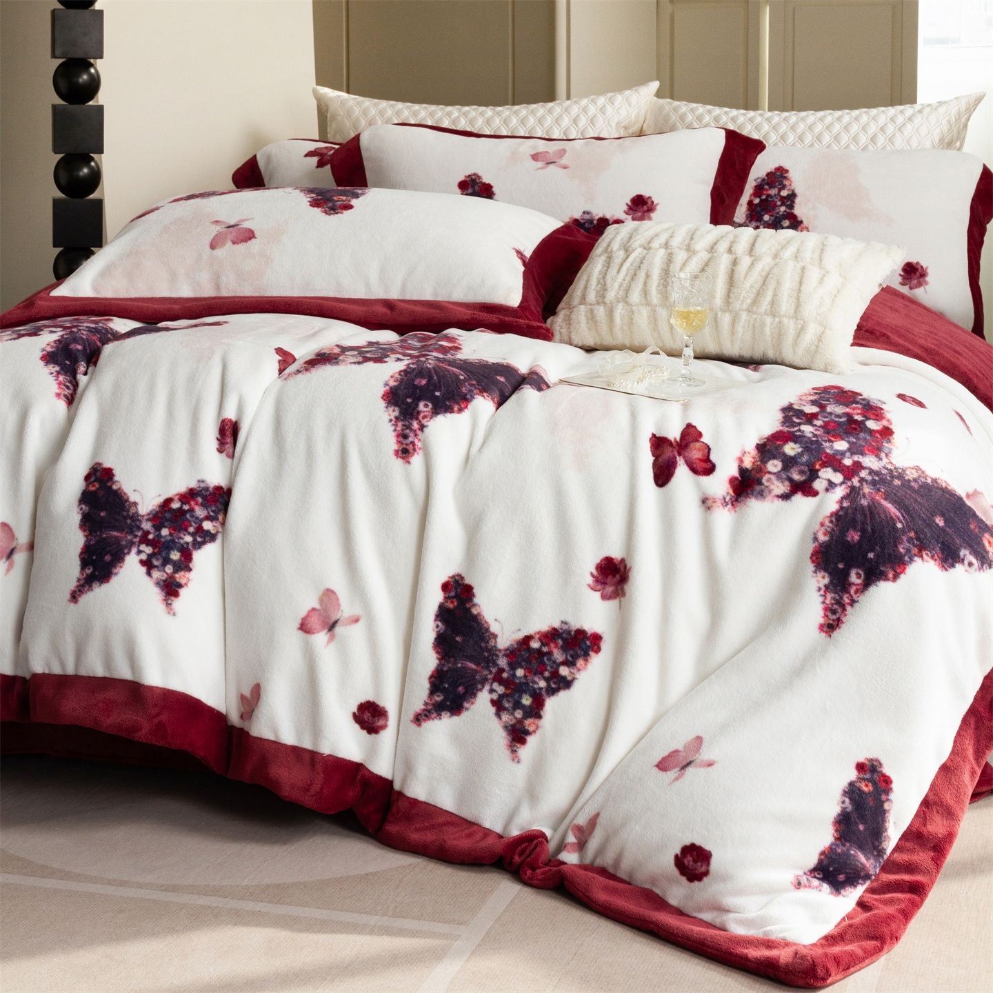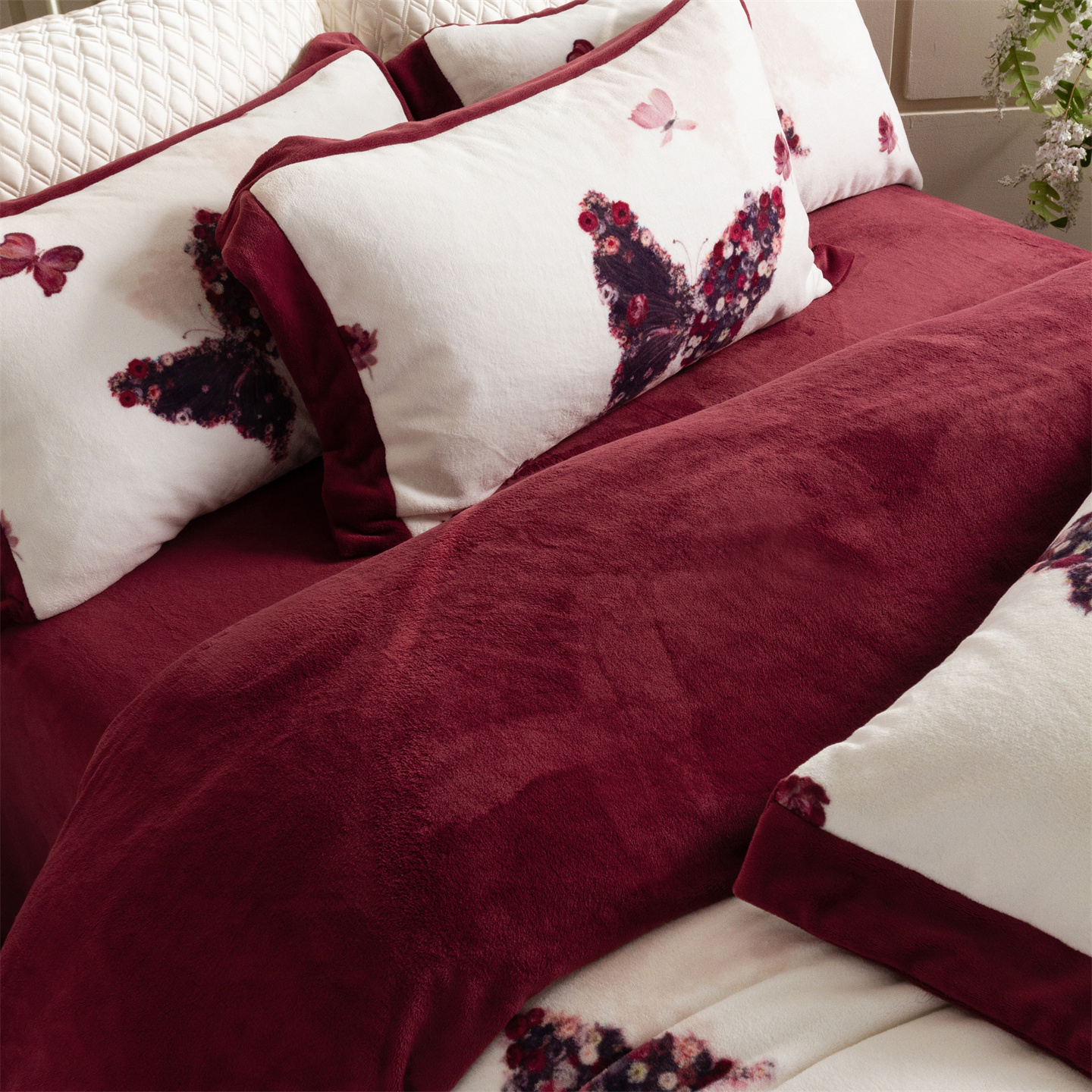 商品名称:馨蕊 2025新款意大利进口煦暖绒拼角工艺秋冬轻奢煦暖绒系列四件套-绒澜心 会员-10【券后控价338/358】 绒澜心-温莎红