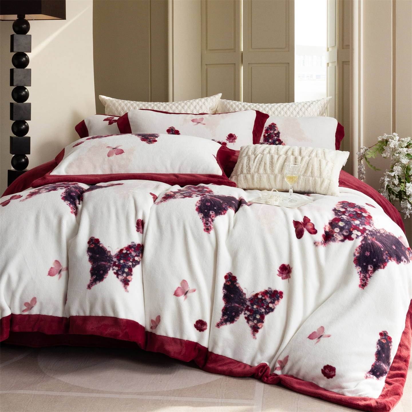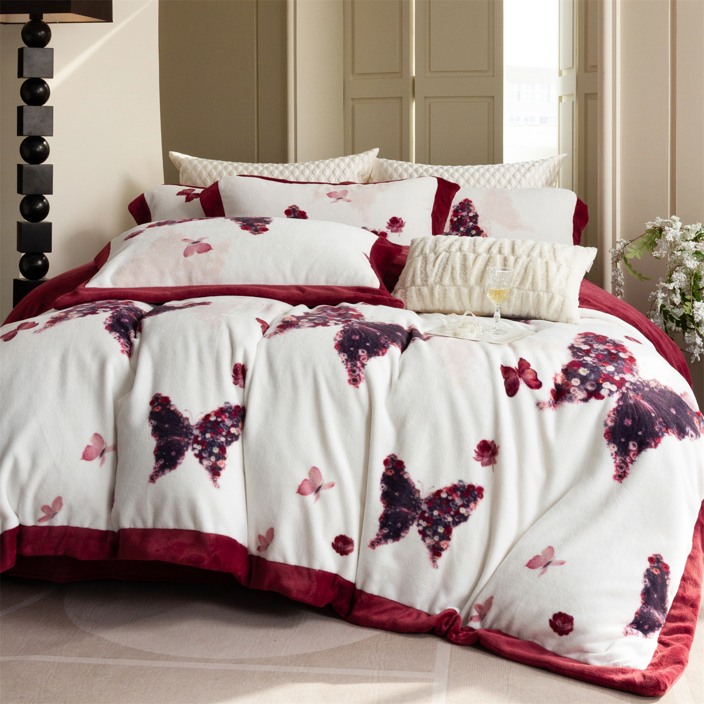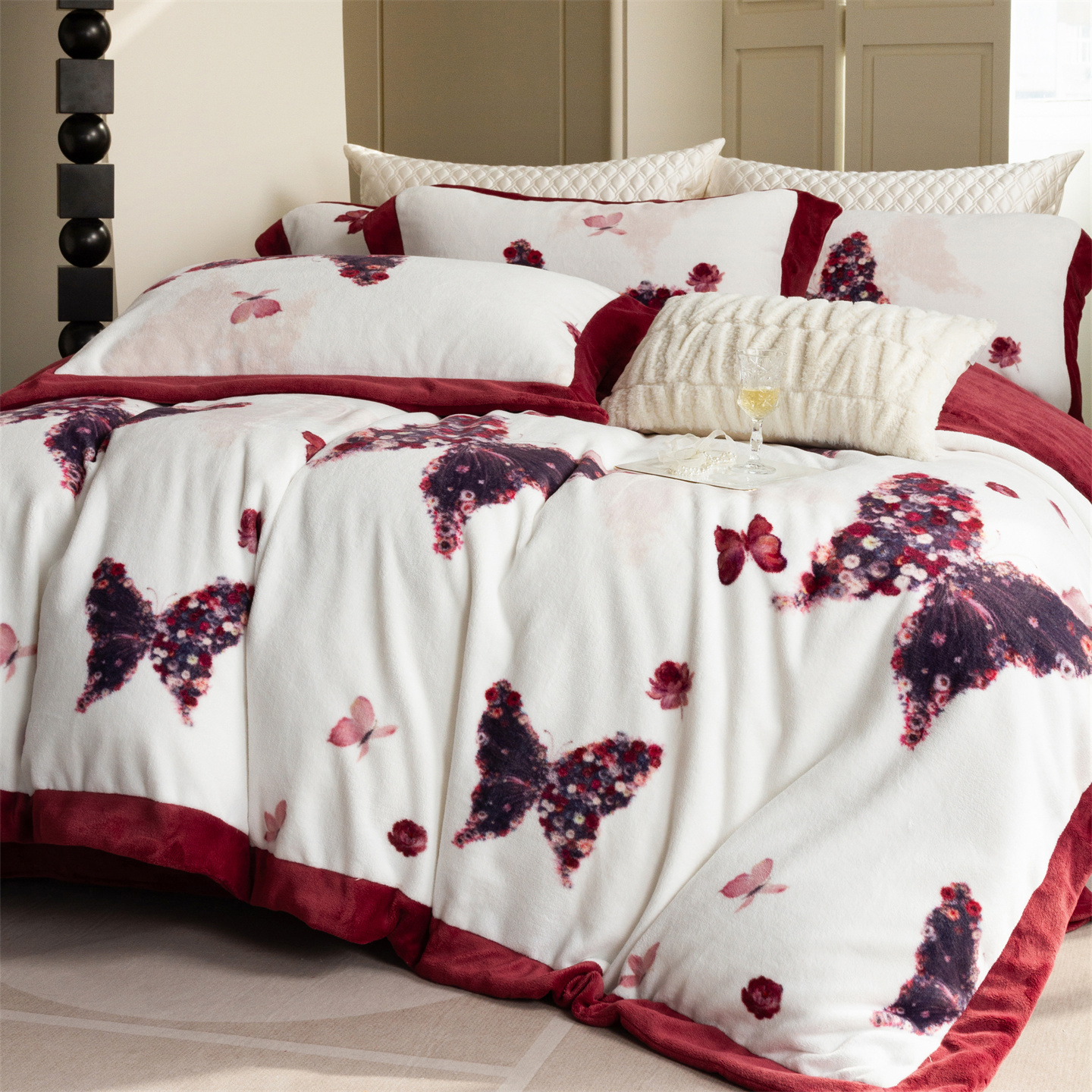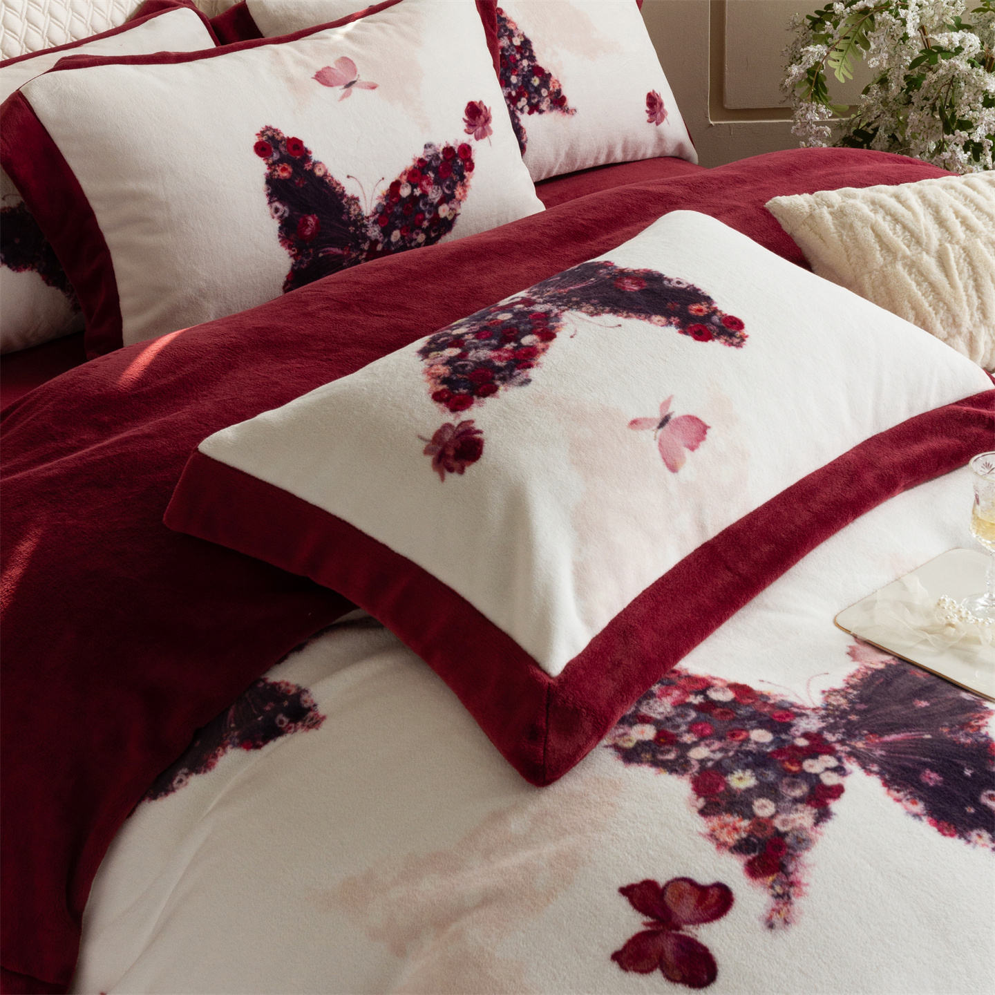 馨蕊 2025新款意大利进口煦暖绒拼角工艺秋冬轻奢煦暖绒系列四件套-绒澜心 会员-10【券后控价338/358】 绒澜心-温莎红