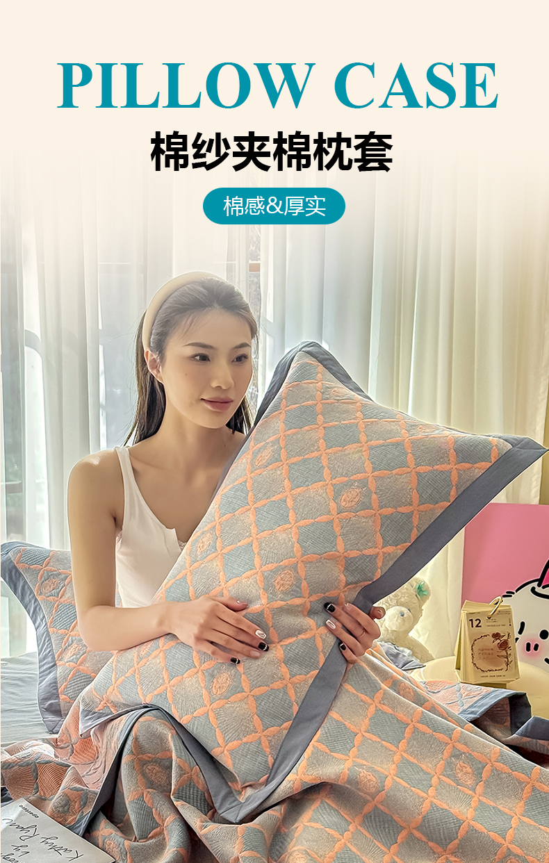 商品名称:棠薇家纺 2025新款三层纱布枕套单条装一对装枕头套加大加厚48*74cm枕芯套 晨光