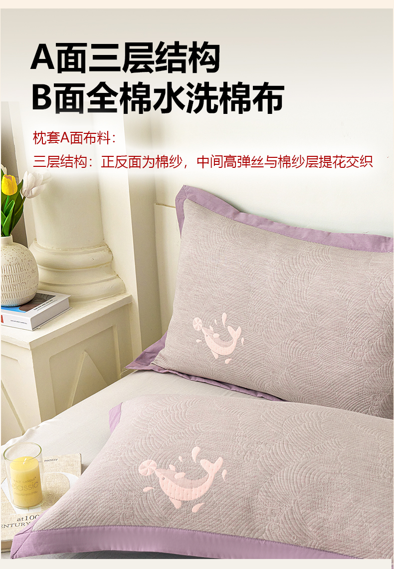 商品名称:棠薇家纺 2025新款三层纱布枕套单条装一对装枕头套加大加厚48*74cm枕芯套 顽皮海豚