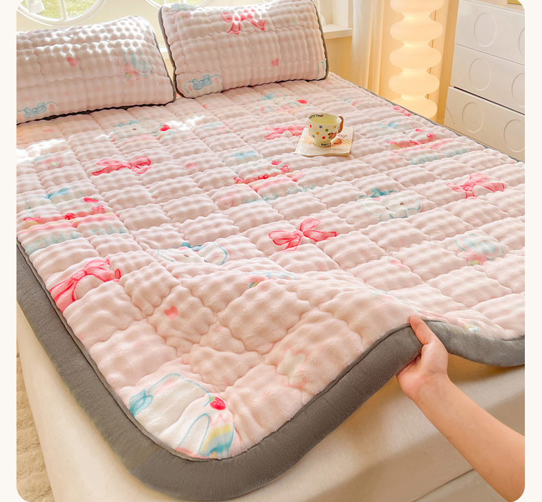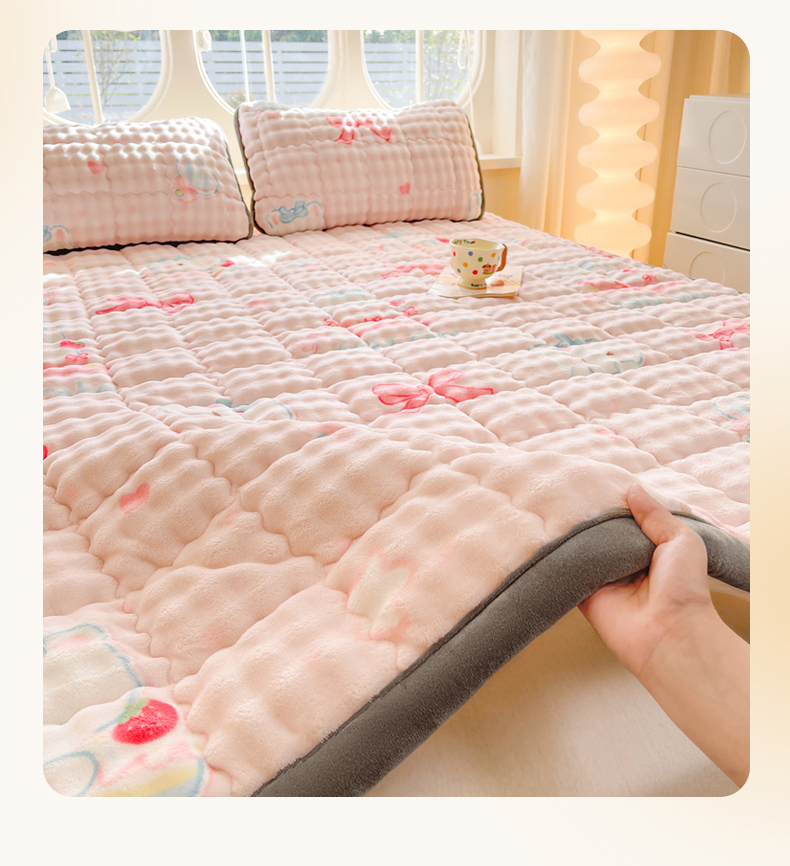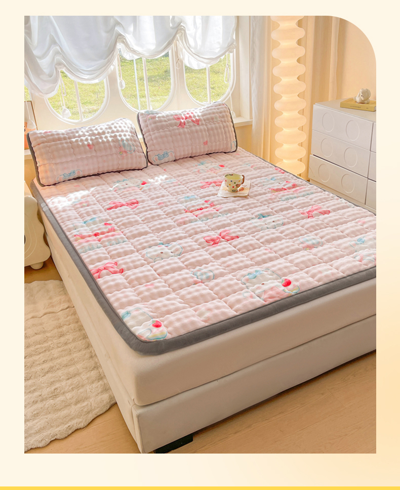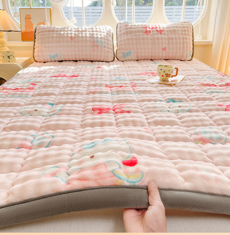奇丝雅 2025新款A类牛奶绒泡泡绒床褥床垫床盖兔毛绒家用学生宿舍上下铺寝室褥子软垫床护垫夹棉(大床) 樱桃猫咪