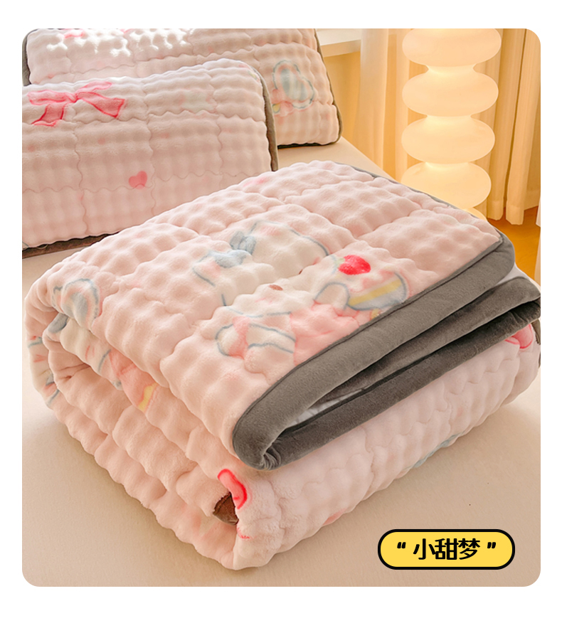 (总)奇丝雅 2025新款A类牛奶绒泡泡绒床褥床垫床盖兔毛绒家用学生宿舍上下铺寝室褥子软垫床护垫夹棉(大床),星星猫咪,爱心咖,繁星,幻影灰,暖绒蓝,趴趴狗,清新绿,柔和蓝,樱桃猫咪,月亮湾