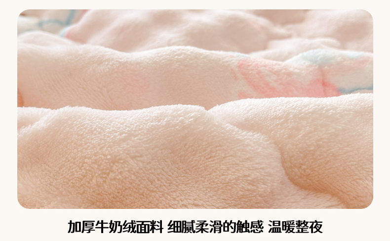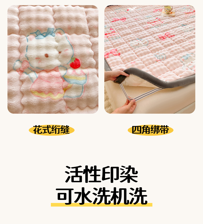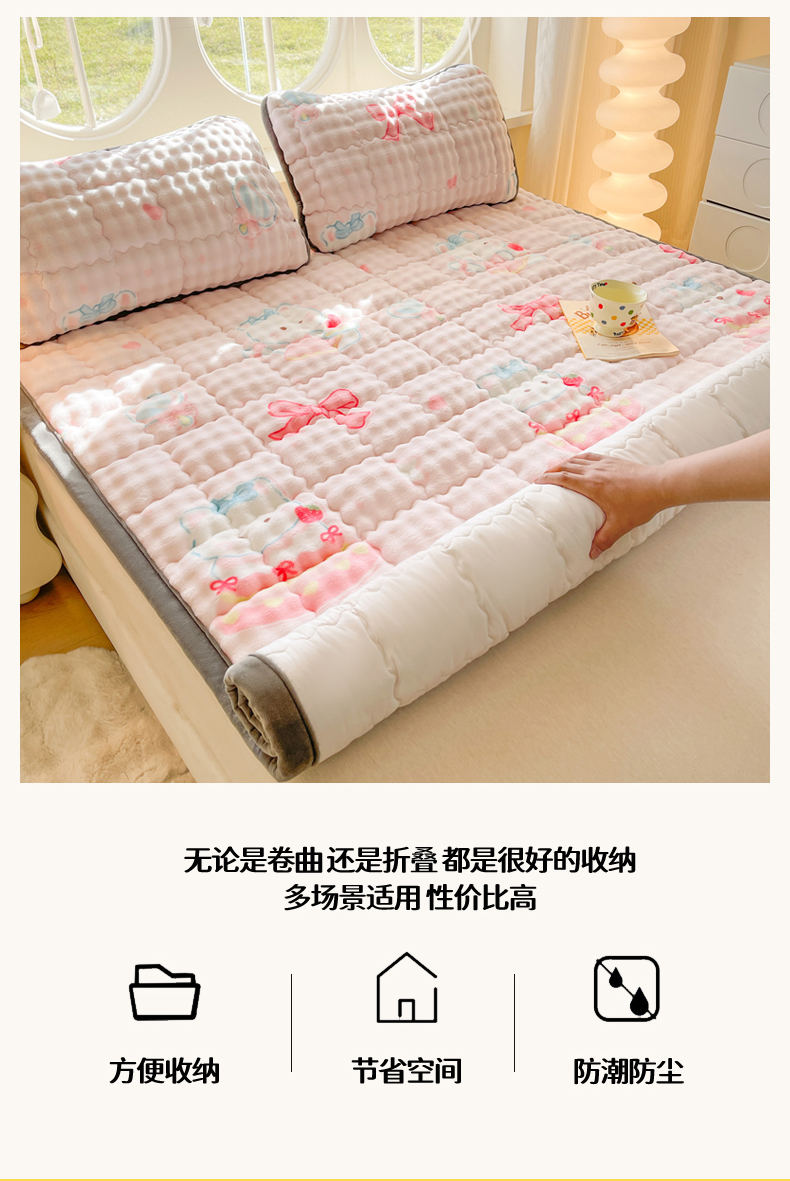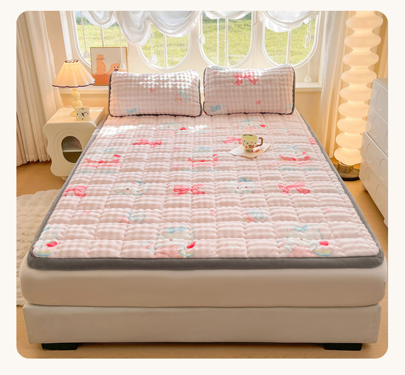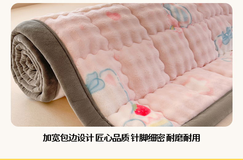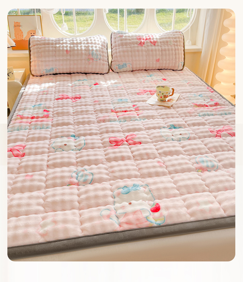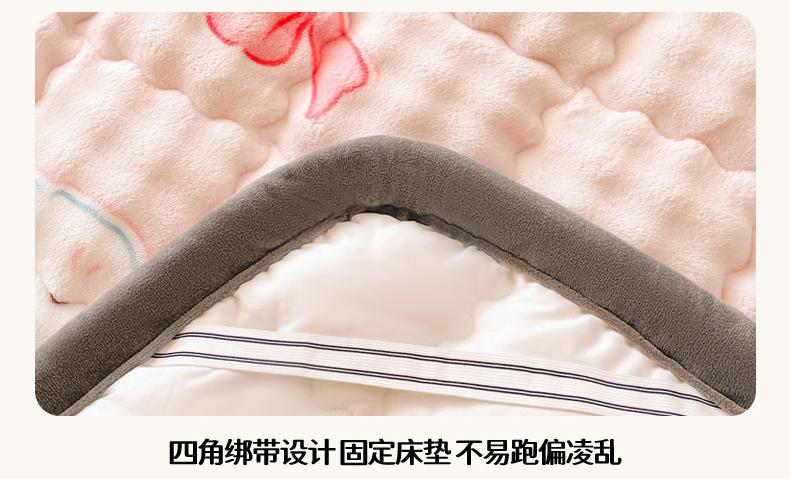 商品名称:奇丝雅 2025新款A类牛奶绒泡泡绒床褥床垫床盖兔毛绒家用学生宿舍上下铺寝室褥子软垫床护垫夹棉(大床) 樱桃猫咪