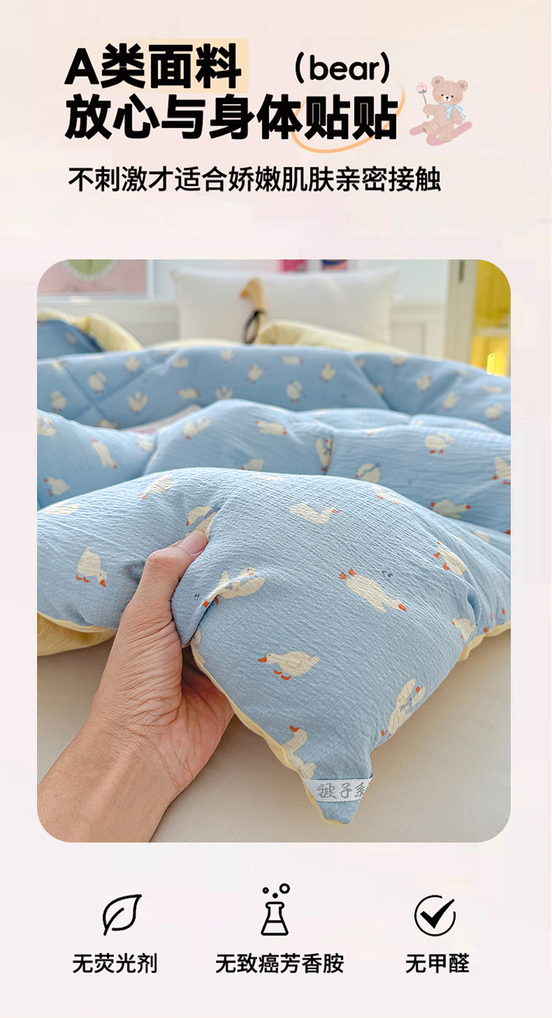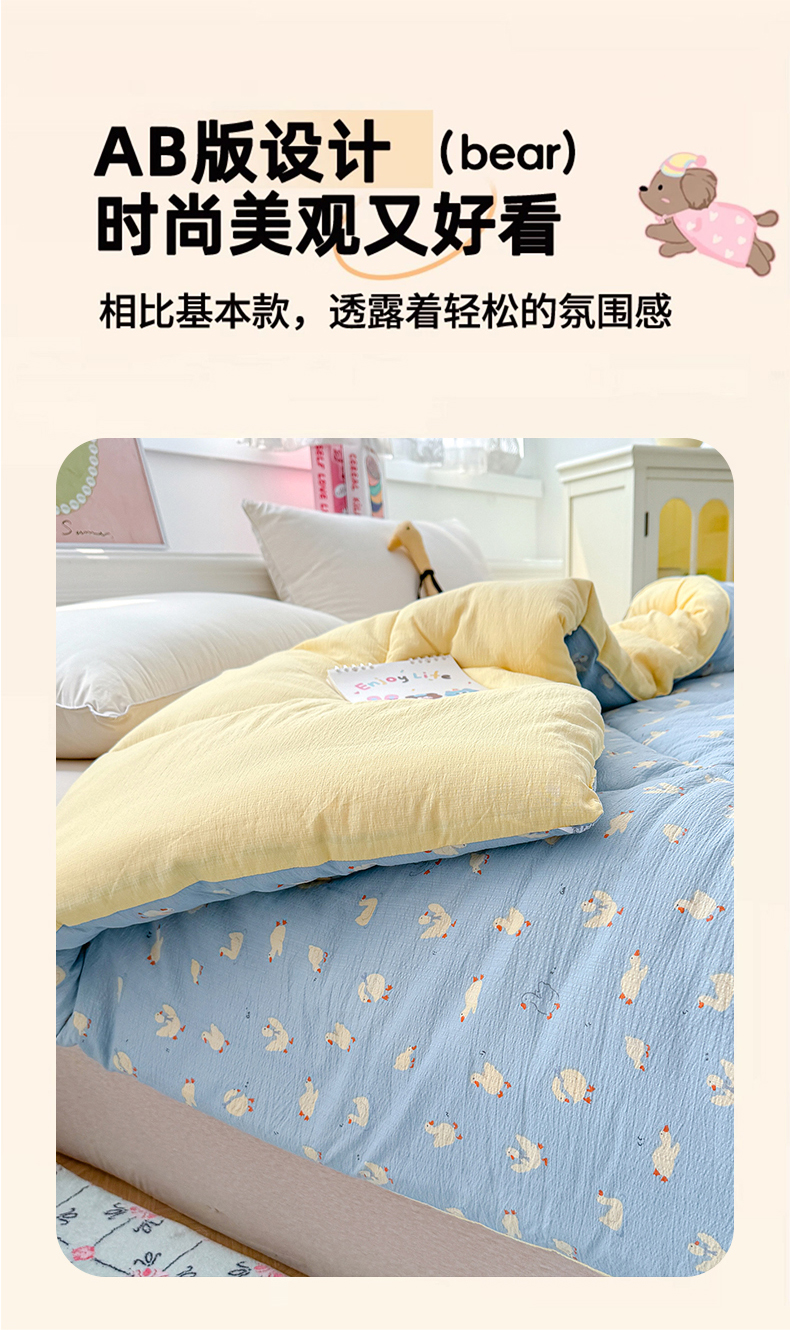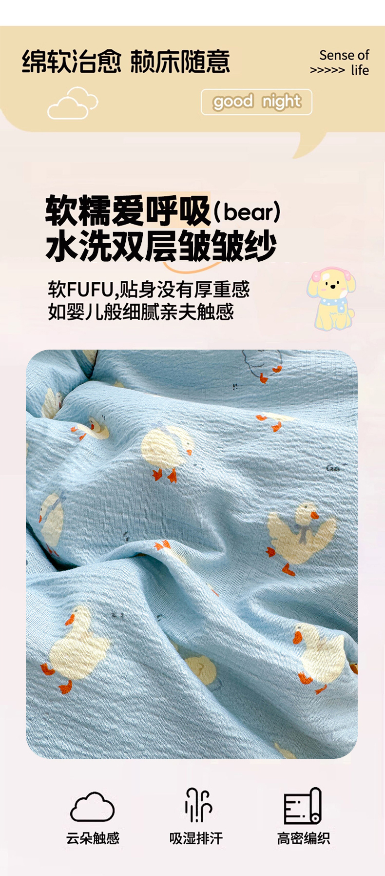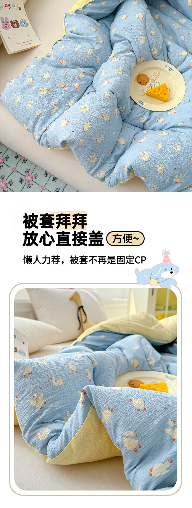 • 91家纺网 家纺一手货源 找家纺 桔禾家纺 2026新款云感有氧双层纱冬被抗菌被春秋被被子被芯 A类水洗双层皱皱纱冬被-鹅鹅鹅