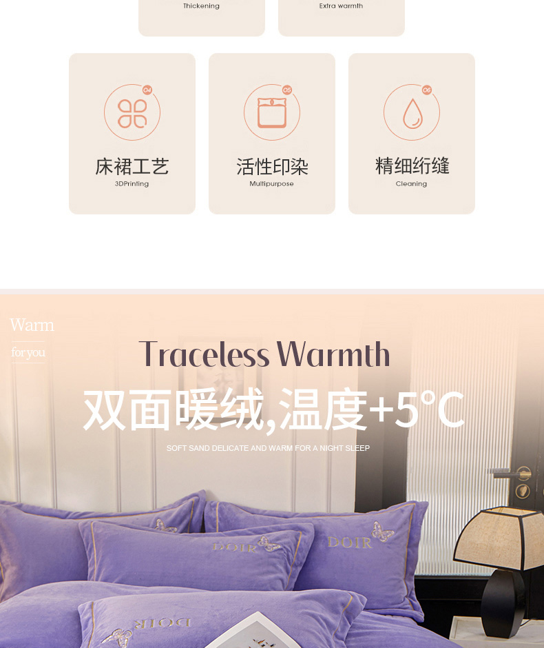 (总)程百万家纺 2025新款A类婴儿绒夹棉加厚床裙床盖,桃粉,宝蓝,大红,豆沙,橘黄,浅灰,紫色