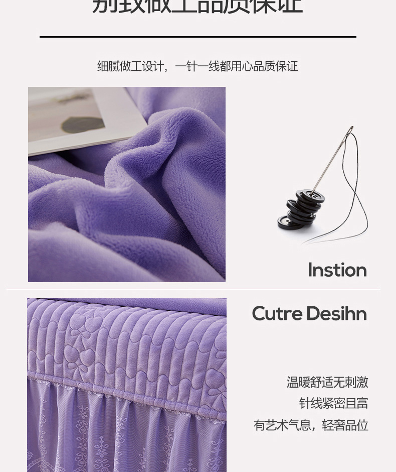 (总)程百万家纺 2025新款铂金绒夹棉刺绣床裙套件,紫色,宝蓝,大红,豆沙,湖蓝,灰色,橘黄,樱粉