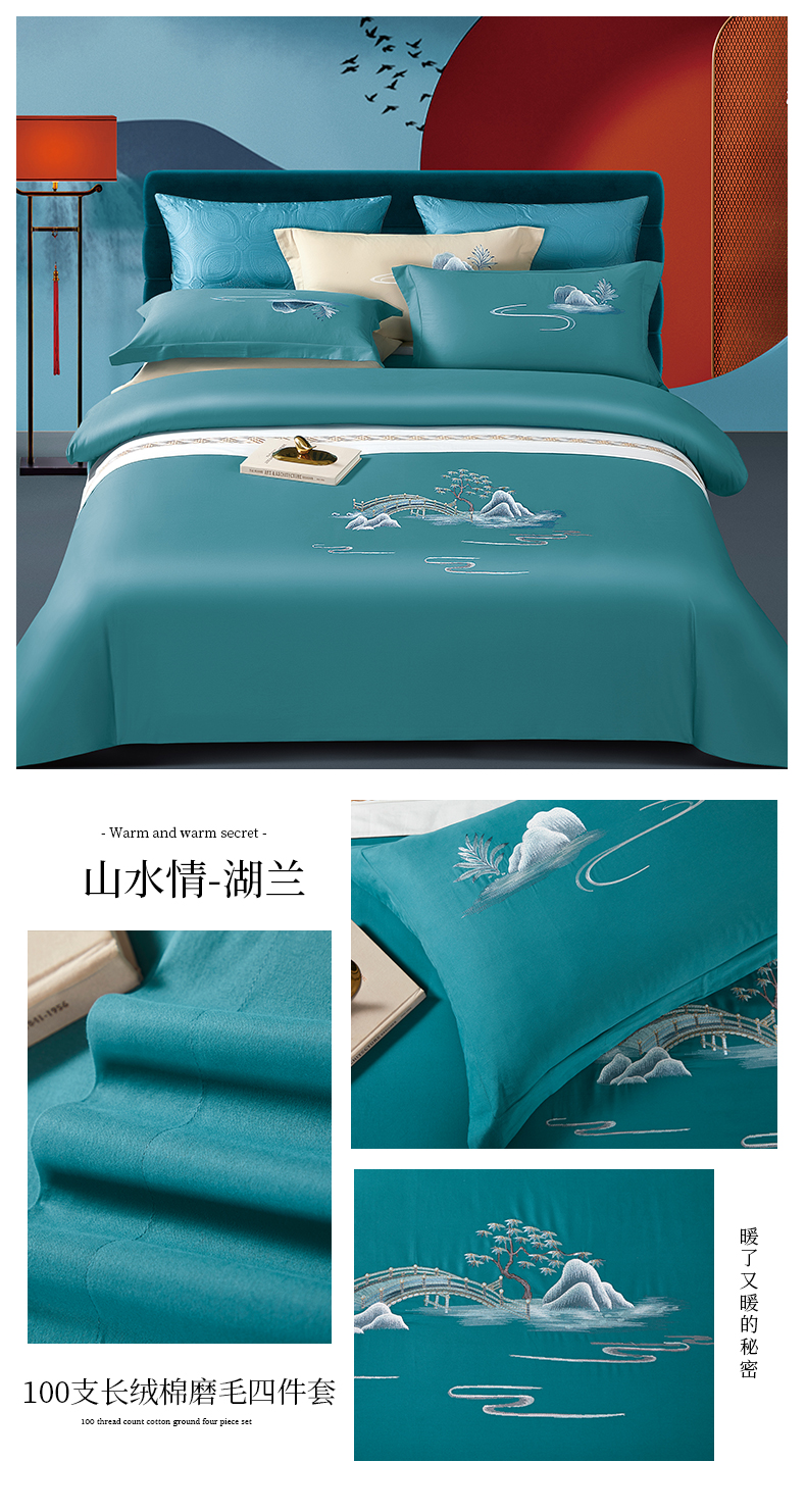(总)浩情国际婚庆供货中心 2026新品-100支全棉长绒棉磨毛高端刺绣系列四件套,轻曼-豆沙,轻曼-湖兰,轻曼-米驼,轻曼-浅绿,轻曼-浅玉,轻曼-银灰,山水情-豆沙,山水情-粉玉,山水情-湖兰,山水情-米驼,山水情-浅灰,山水情-水兰