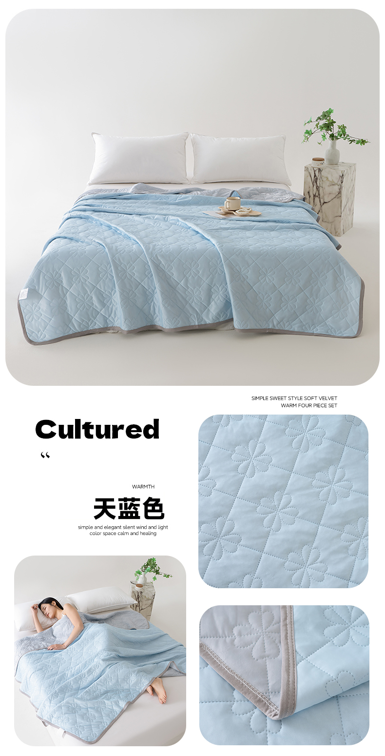 • 91家纺网 家纺一手货源 找家纺 (总)伊梵居 2026新款简约凉感丝夏被夏凉被空调被,果绿色,湖蓝色,魅紫色,浅粉色,浅绿色,深灰色,天蓝色