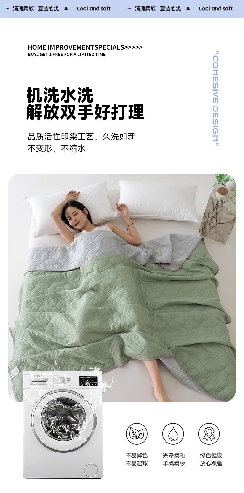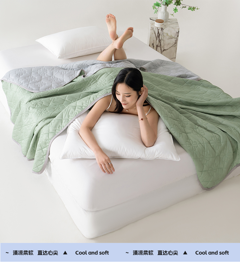 • 91家纺网 家纺一手货源 找家纺 伊梵居 2026新款简约凉感丝夏被夏凉被空调被 果绿色