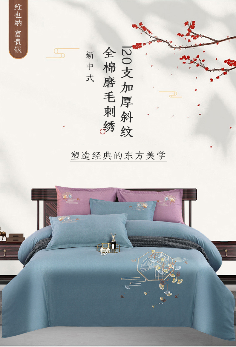 浩情国际婚庆供货中心 2026四季新品120S全棉斜纹加厚磨毛高端刺绣四件套 维也纳-富贵银