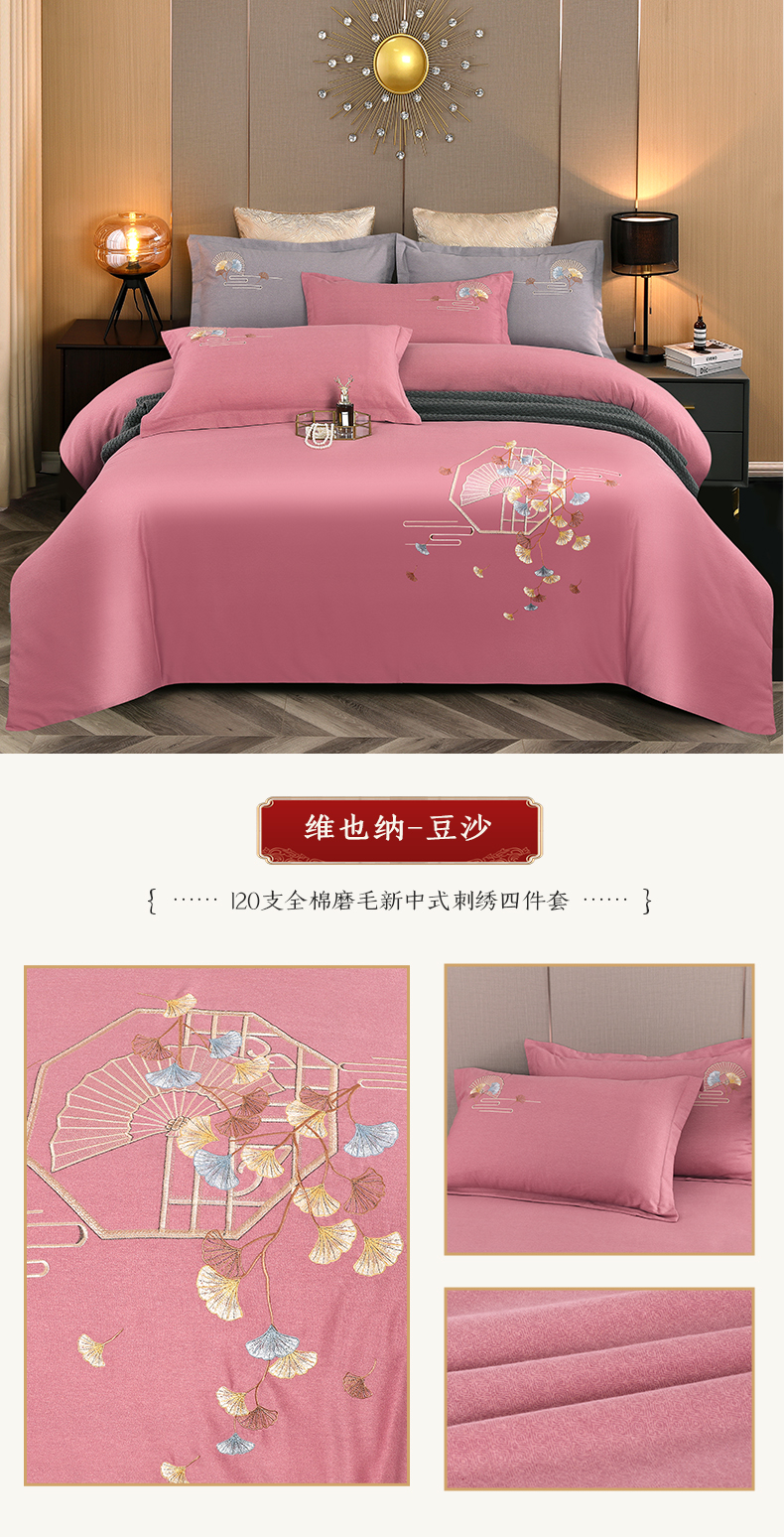 (总)浩情国际婚庆供货中心 2026新品-100支全棉长绒棉磨毛高端刺绣系列四件套,轻曼-豆沙,轻曼-湖兰,轻曼-米驼,轻曼-浅绿,轻曼-浅玉,轻曼-银灰,山水情-豆沙,山水情-粉玉,山水情-湖兰,山水情-米驼,山水情-浅灰,山水情-水兰