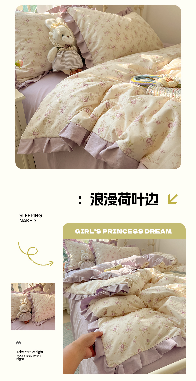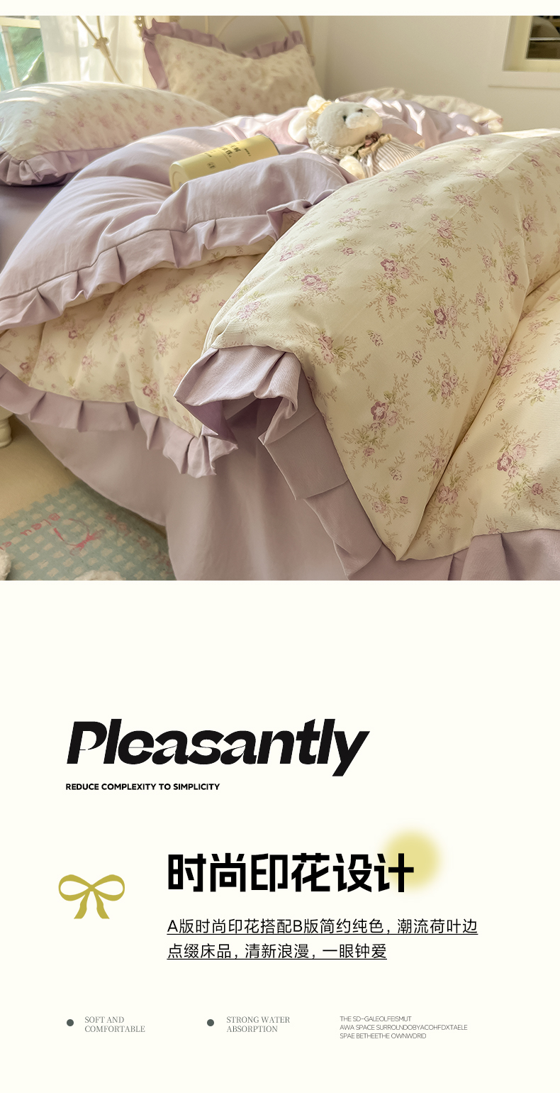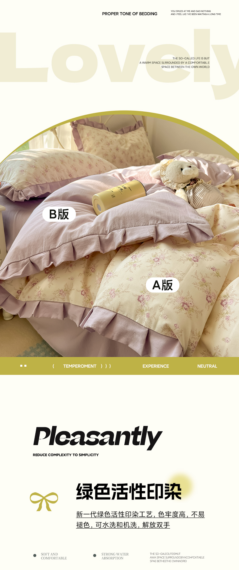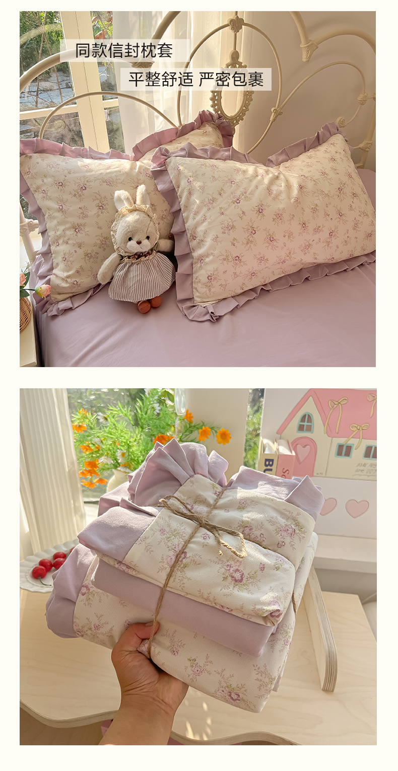 当前位置: 91家纺网 > 商品网购 > 床品套件 > 四件套 > 双层纱四件套 > 韩巢家纺 2026新款花边款针织双层纱四件套 春意花开