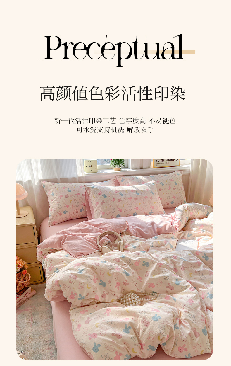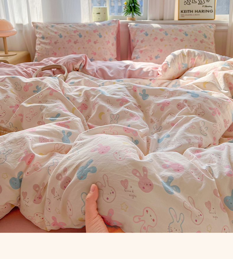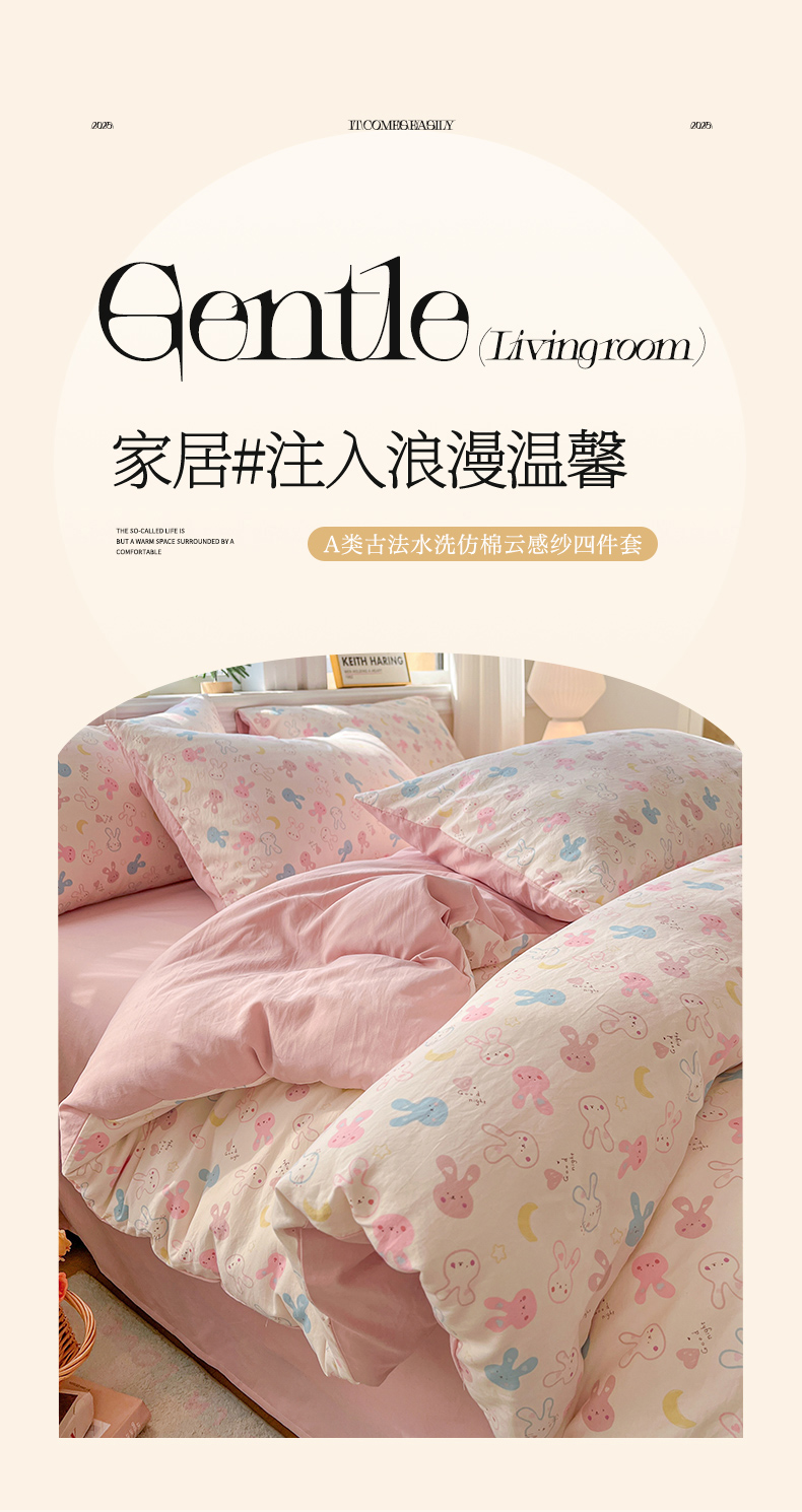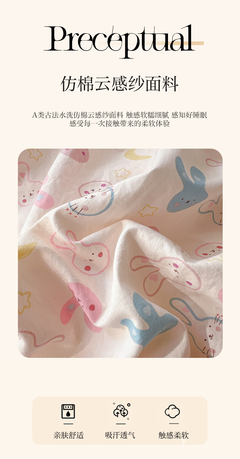 当前位置: 91家纺网 > 商品网购 > 床品套件 > 四件套 > 水洗棉四件套 > 格真 2026新款韩国小布袋A类古法水洗仿棉云感纱四件套 兔耳朵