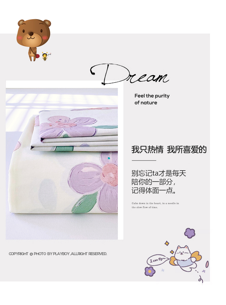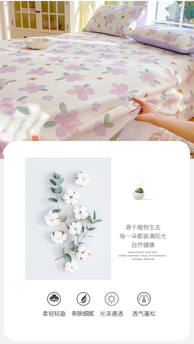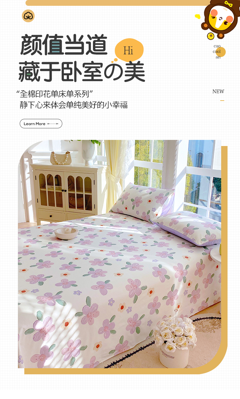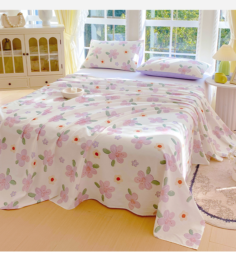 • 91家纺网 家纺一手货源 找家纺 小懒猪 2026全棉纯棉印花单床单床单单件 淡紫花屹