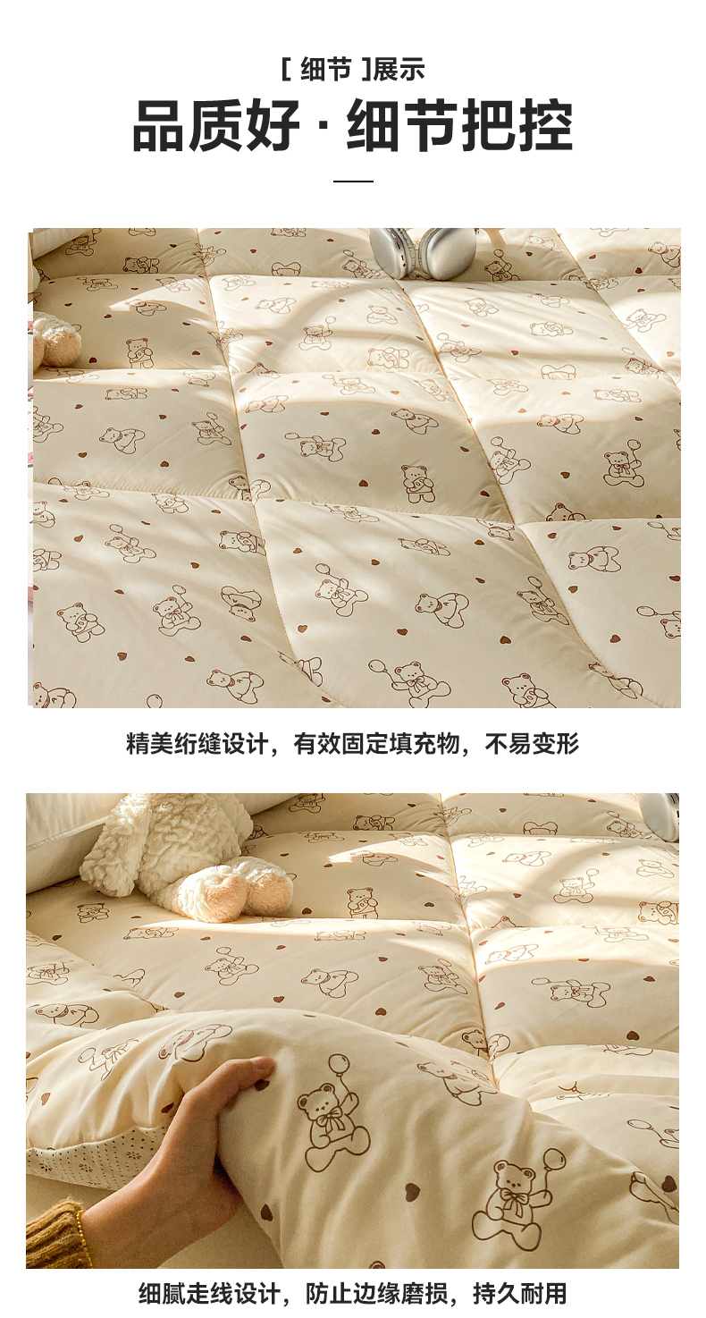 • 91家纺网 家纺一手货源 找家纺 (总)缦卡琳家纺 2025新款水洗棉纤维羽丝棉床垫,快乐宝贝,草莓酪,高级灰,格纹熊,蝴蝶结,花丛小熊,经典白色,漫调时光,玫瑰花语,萌宠乐园,欧拉格,小熊院长,叶叶情思,樱桃之恋,游戏时间