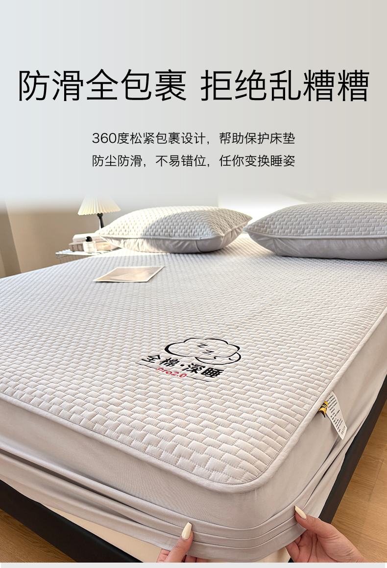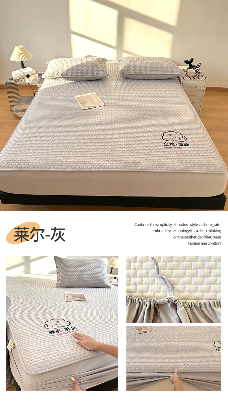 • 91家纺网 家纺一手货源 找家纺 居眠 2026新款莱尔-全棉深睡夹棉床笠 莱尔-灰