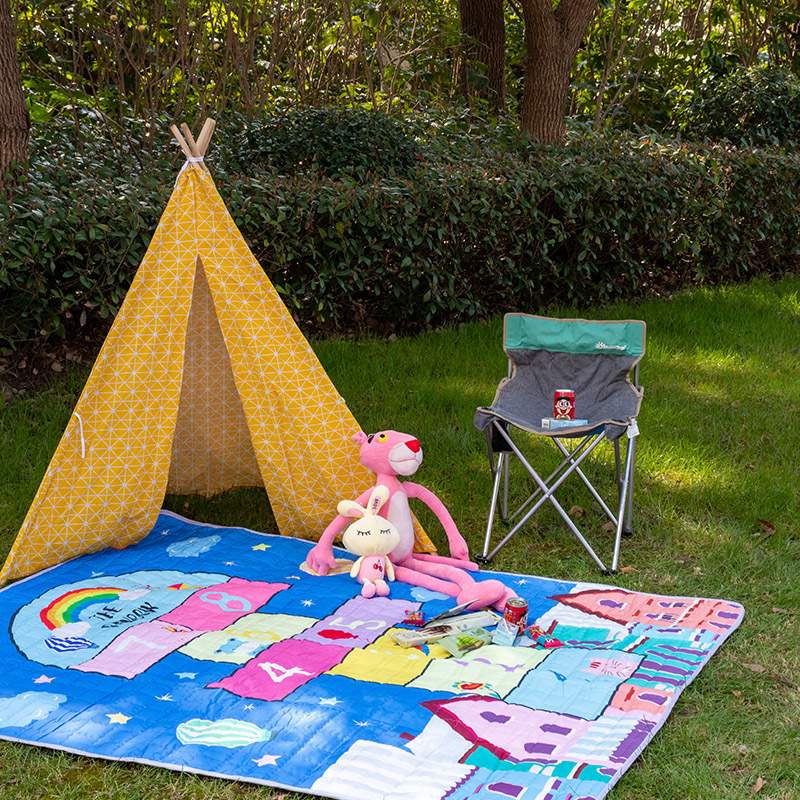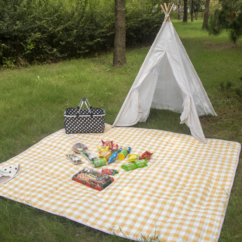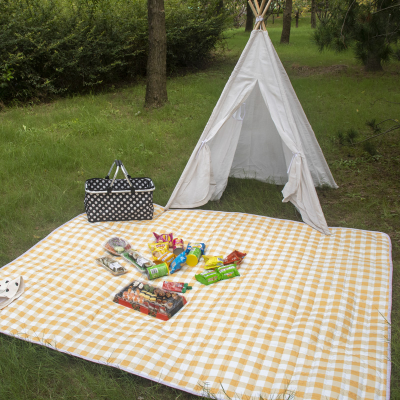 欣宜家纺 2025新款ins风加厚绗缝防泼水野餐垫 黄蓝格