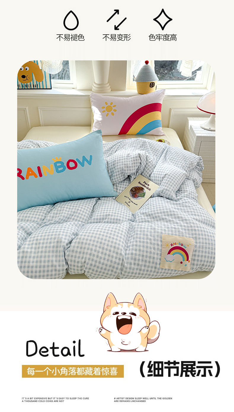 (总)温眠家纺 2026新款亲肤舒适甄选三层纱印花套件系列四件套,贩卖夏风-蓝,花丛点点猫,樱桃蝴蝶,蕾丝熊,葡萄腊肠狗,糖豆腊肠狗,星月天空,樱桃物语,雨爱,圆舞曲,芭乐米菲,彩波波,彩虹世界,动物团团,莓果结,梅森粉,莫奈-咖,沐风,秋月梨,小狗集合会,小黑豆,小花点点,幸运星,南瓜派,复古修狗,碱水结,蓝莓小猫,玫瑰夜-绿