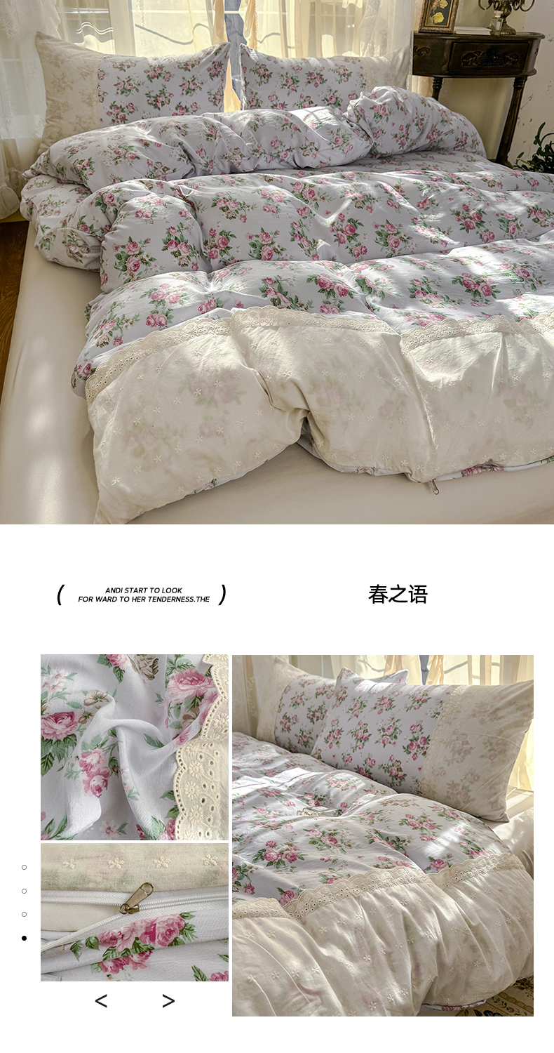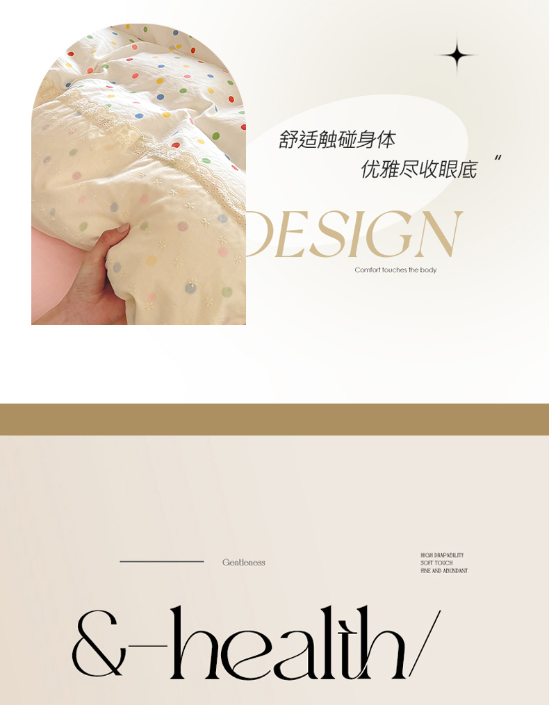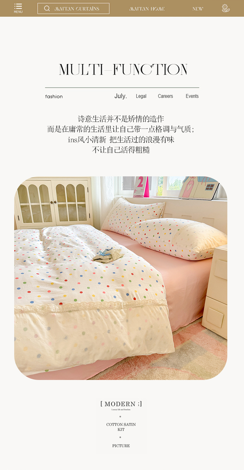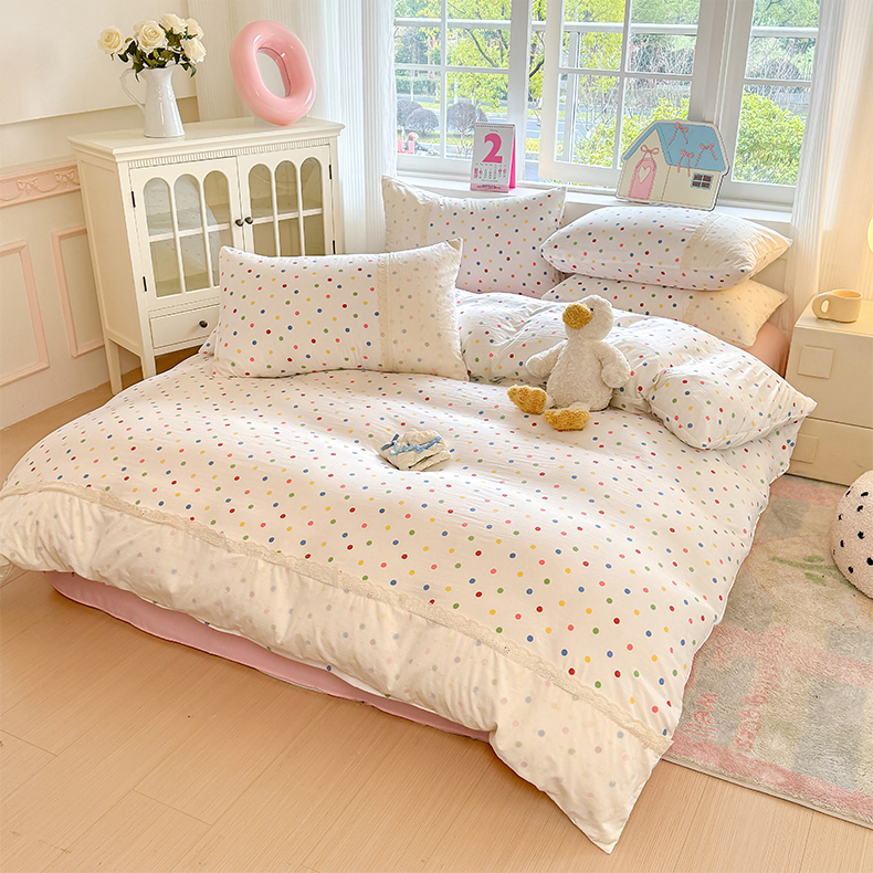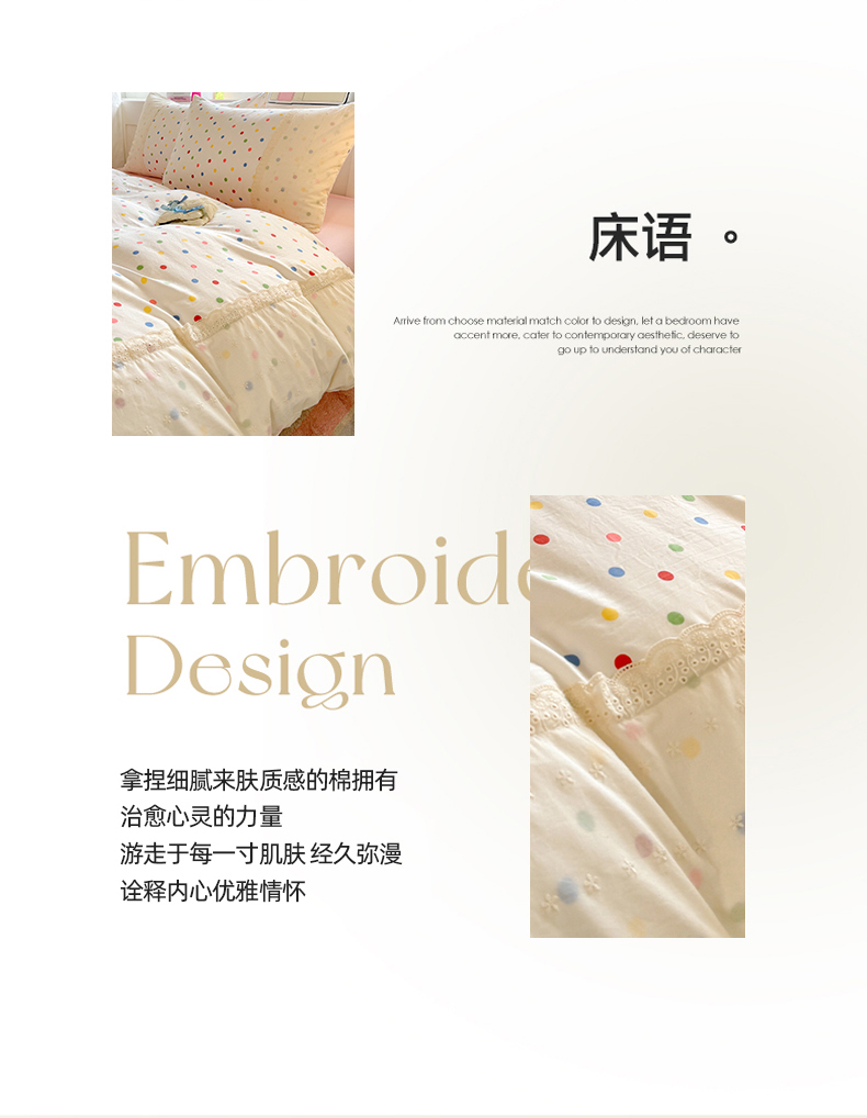 当前位置: 91家纺网 > 商品网购 > 床品套件 > 四件套 > 水洗棉四件套 > 温眠家纺 2025新款ins风小清新镂空花边水洗云朵棉四件套-风格一 奶油波点