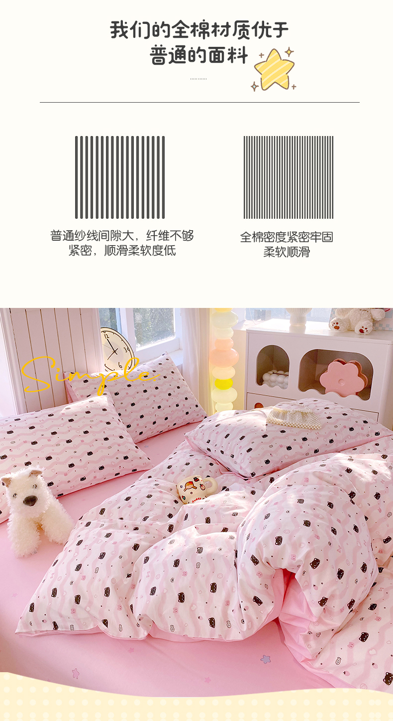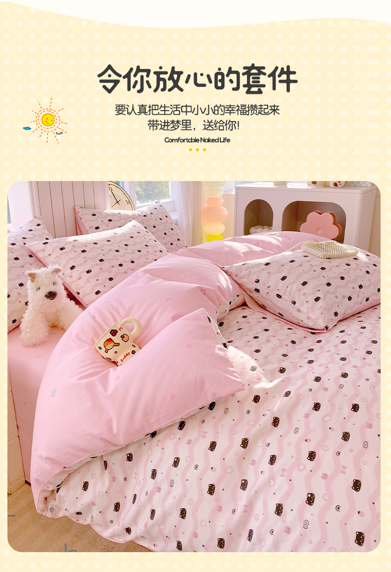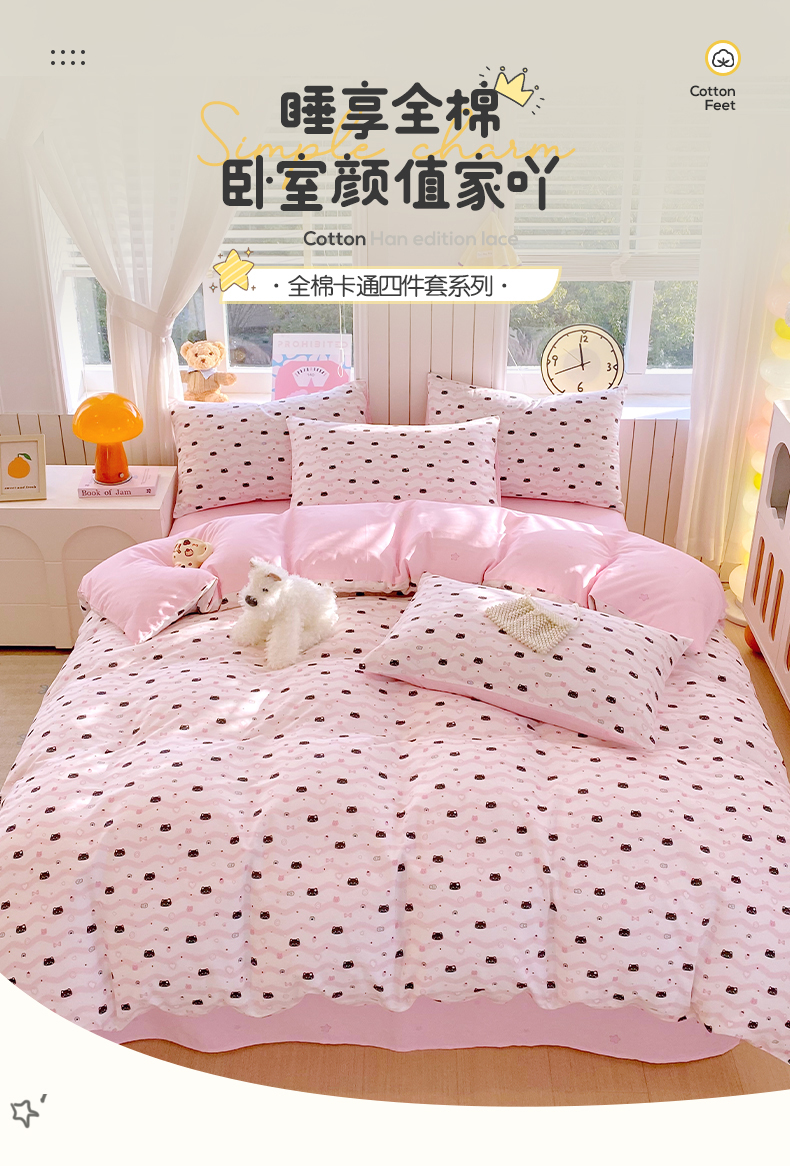当前位置: 91家纺网 > 商品网购 > 床品套件 > 四件套 > 全棉普通四件套 > 小懒猪 2026新款北欧风高支高密全棉纯棉四件套(提供买家秀) 粉喵甜梦