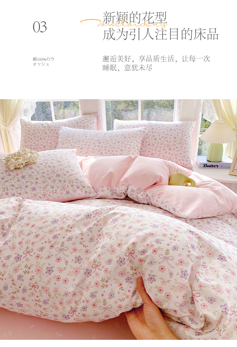 当前位置: 91家纺网 > 商品网购 > 床品套件 > 四件套 > 全棉普通四件套 > 小懒猪 2026新款北欧风高支高密全棉纯棉四件套(提供买家秀) 紫粉花漾