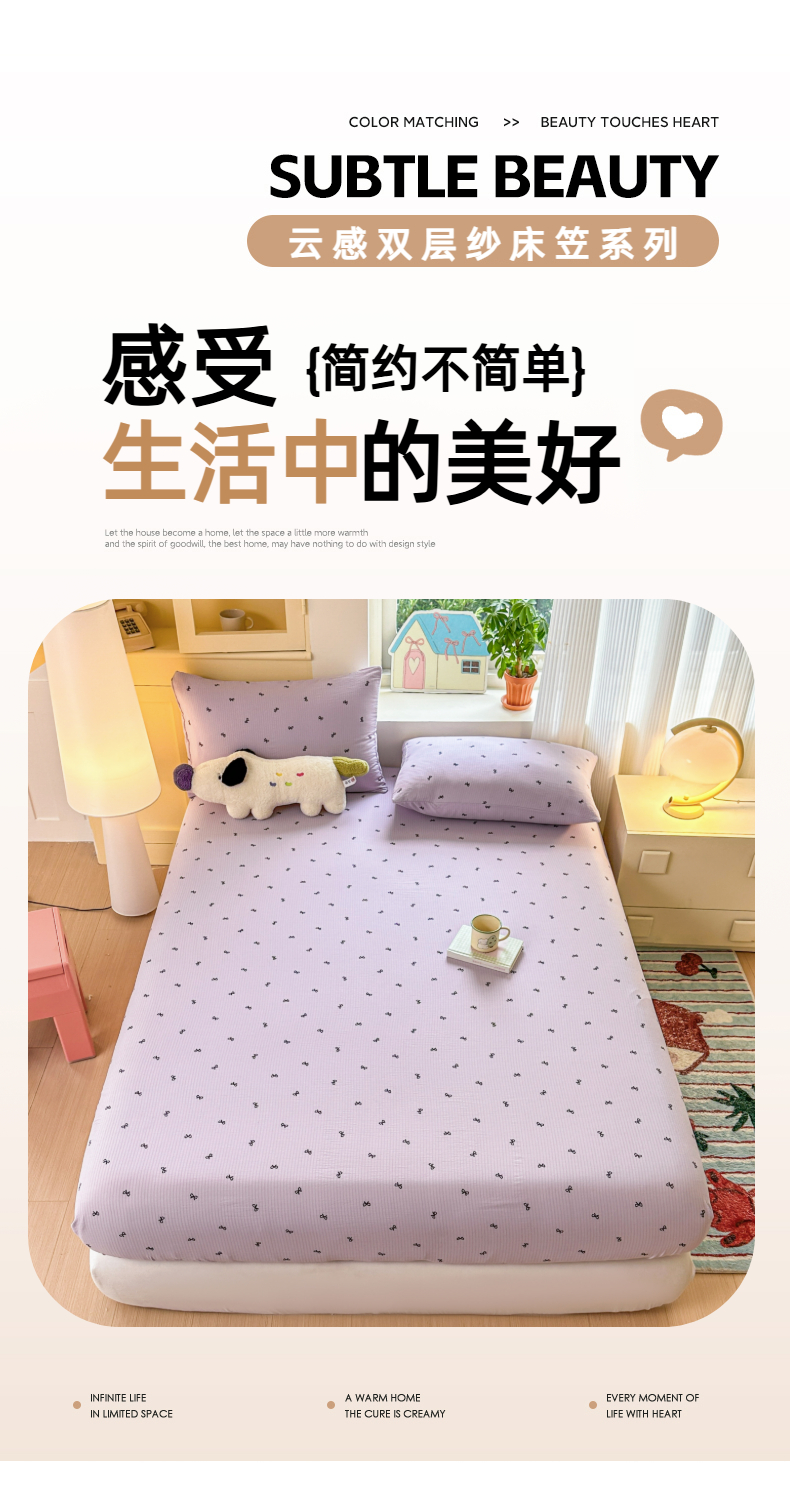 温眠家纺 2025新款云感皱皱双层纱床笠 小资情调