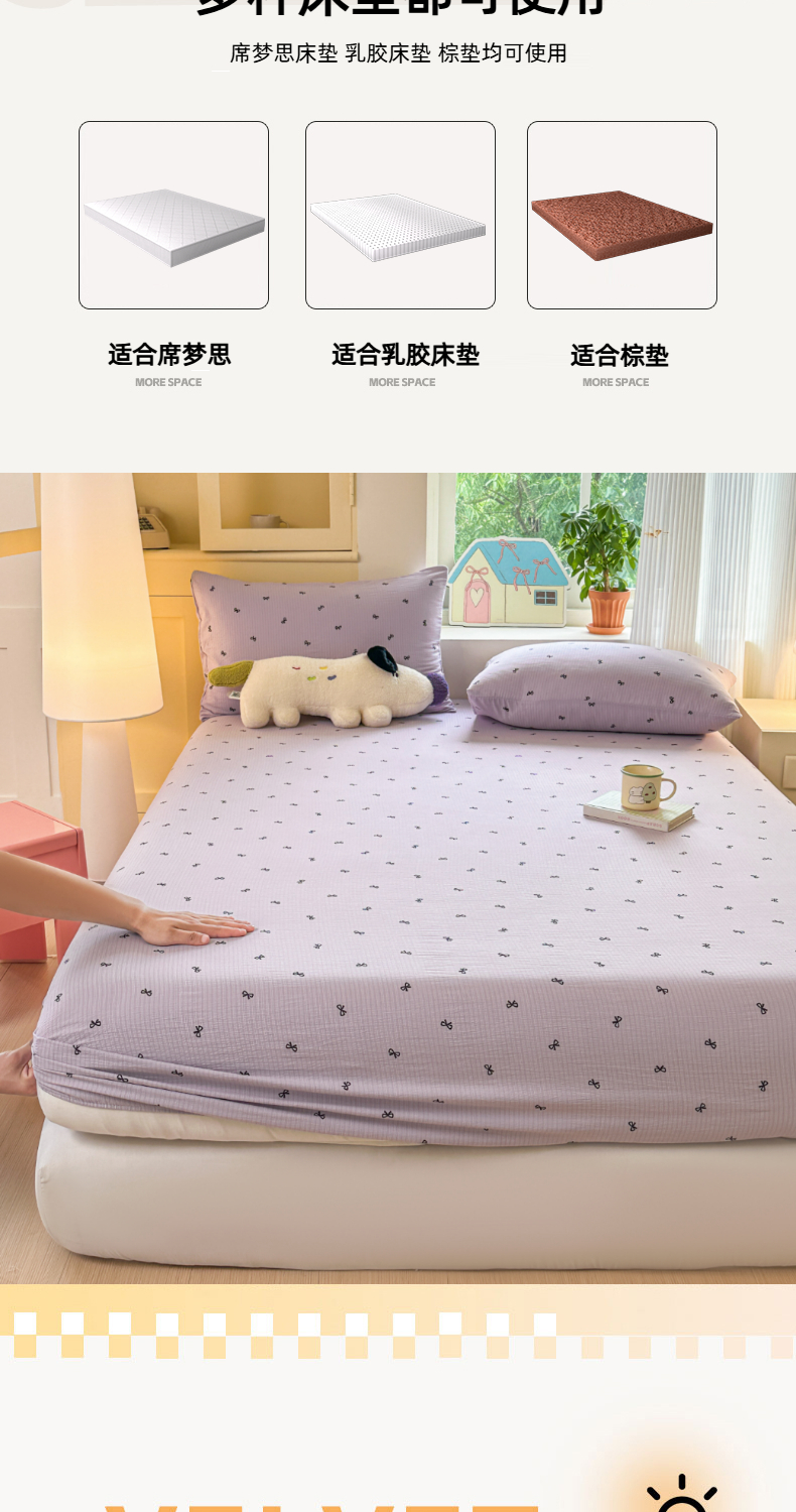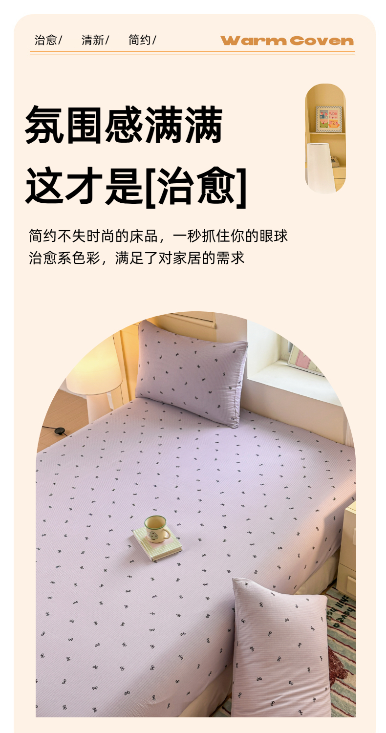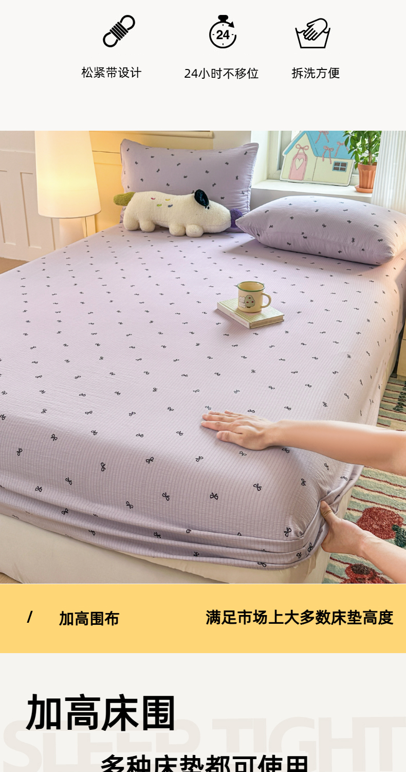 (总)温眠家纺 2026新款古法水洗棉加厚高克重双层纱单床笠床笠单件单品床笠,条纹南瓜,彩波波,蛋糕小猫,扶桑花未落,花韵,绮梦花间,素影,挽星入梦,汪星人,星星人,樱之桃桃,云间花述,织梦,紫菀