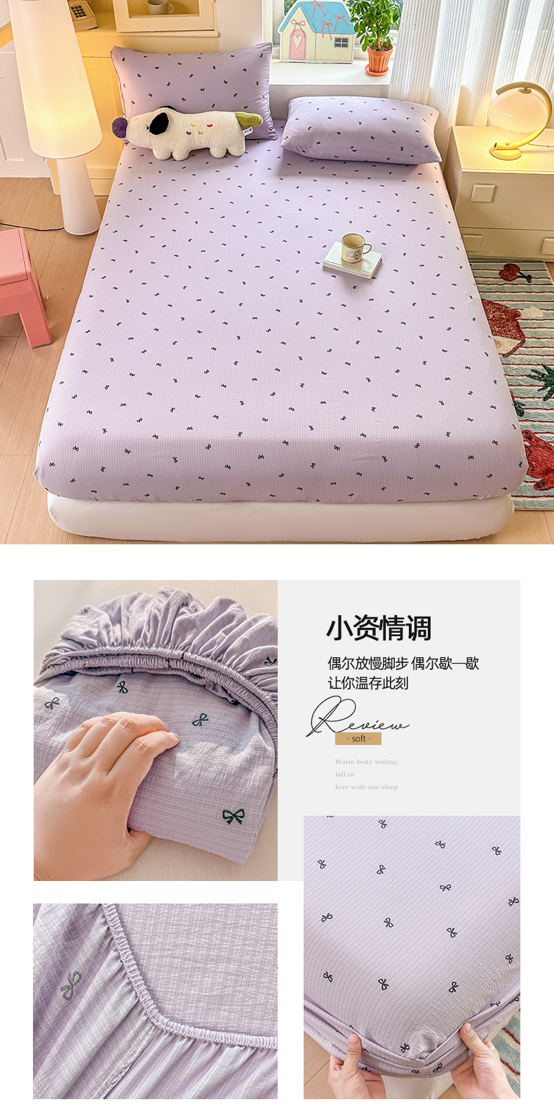 商品名称:温眠家纺 2025新款云感皱皱双层纱床笠 小资情调