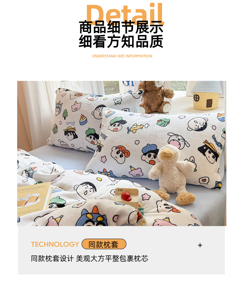 商品名称:温眠家纺 2025新款全工艺200克牛奶绒印花四件套 小新家族
