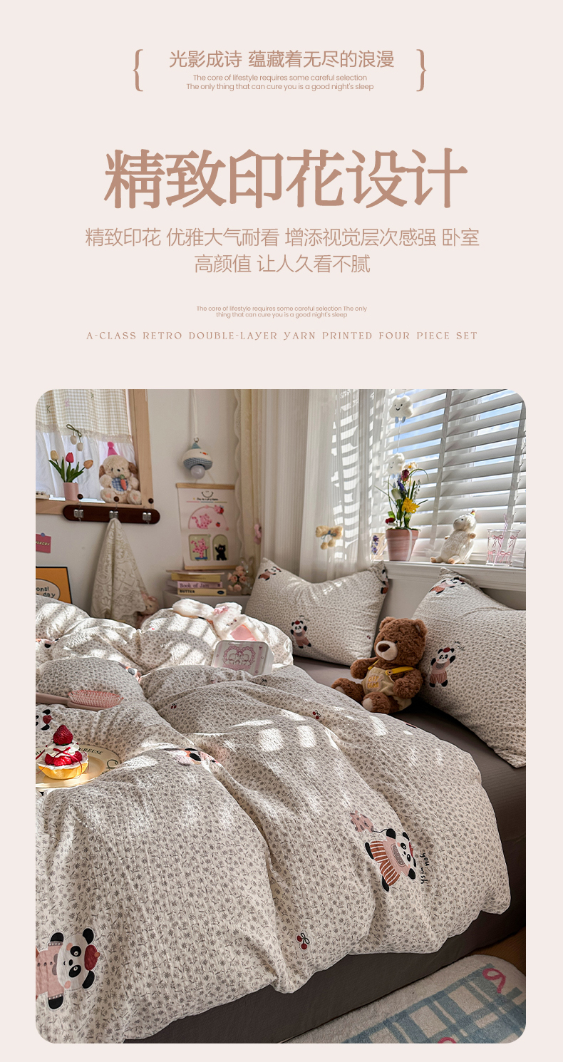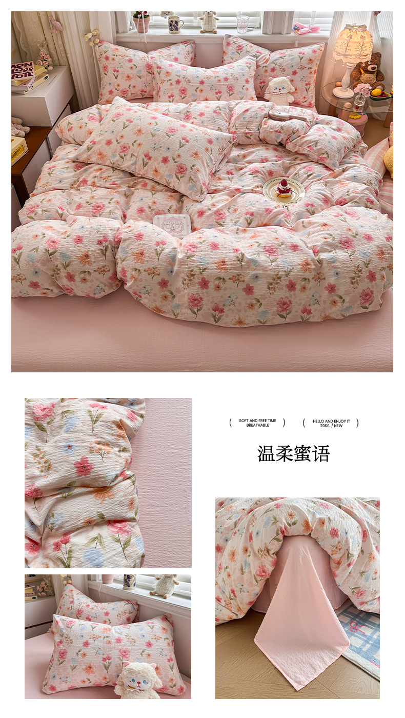 当前位置: 91家纺网 > 商品网购 > 床品套件 > 四件套 > 双层纱四件套 > 卡斯诺家纺馆 2026新款皱皱棉双层纱四件套(下载文件包含买家秀) 静谧时光
