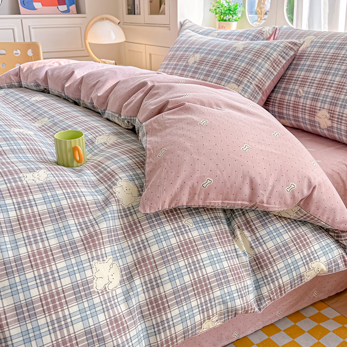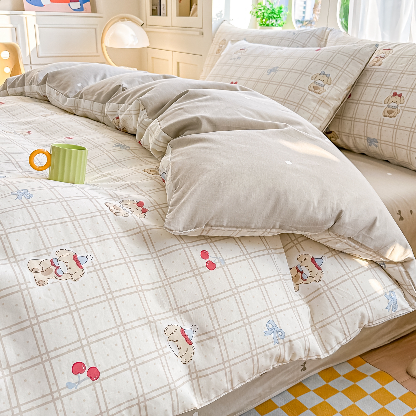 (总)颜选 2025新款绵柔水洗棉夏被四件套,贝利卡,饼干熊,波点,黑狗狗,蝴蝶结熊,花花狗,可可猫咪,铃铛狗