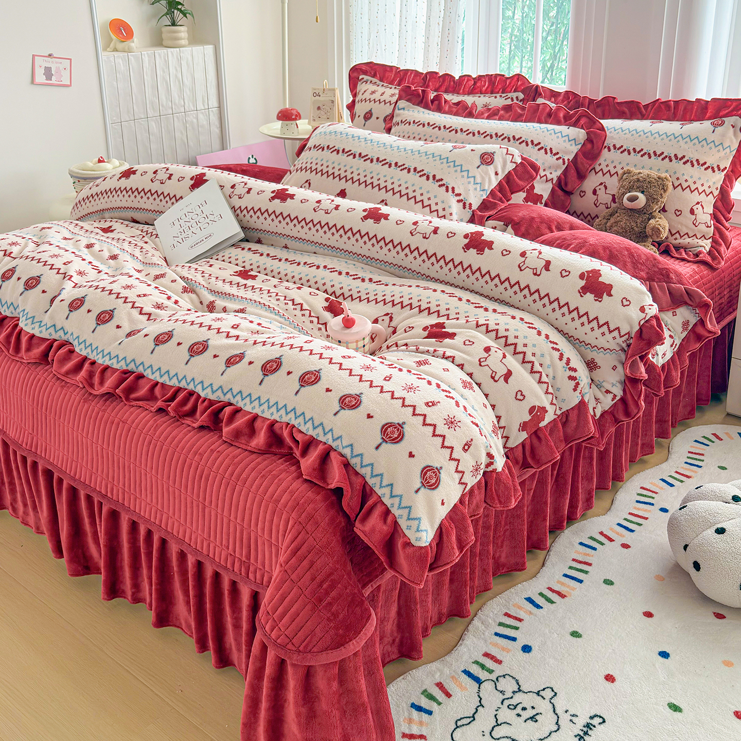 当前位置: 91家纺网 > 商品网购 > 床品套件 > 四件套 > 牛奶绒四件套 > 梵克保罗 2026新款花边款牛奶绒印花贺岁款床盖四件套床褥炕垫四件套 花边款-马上有福