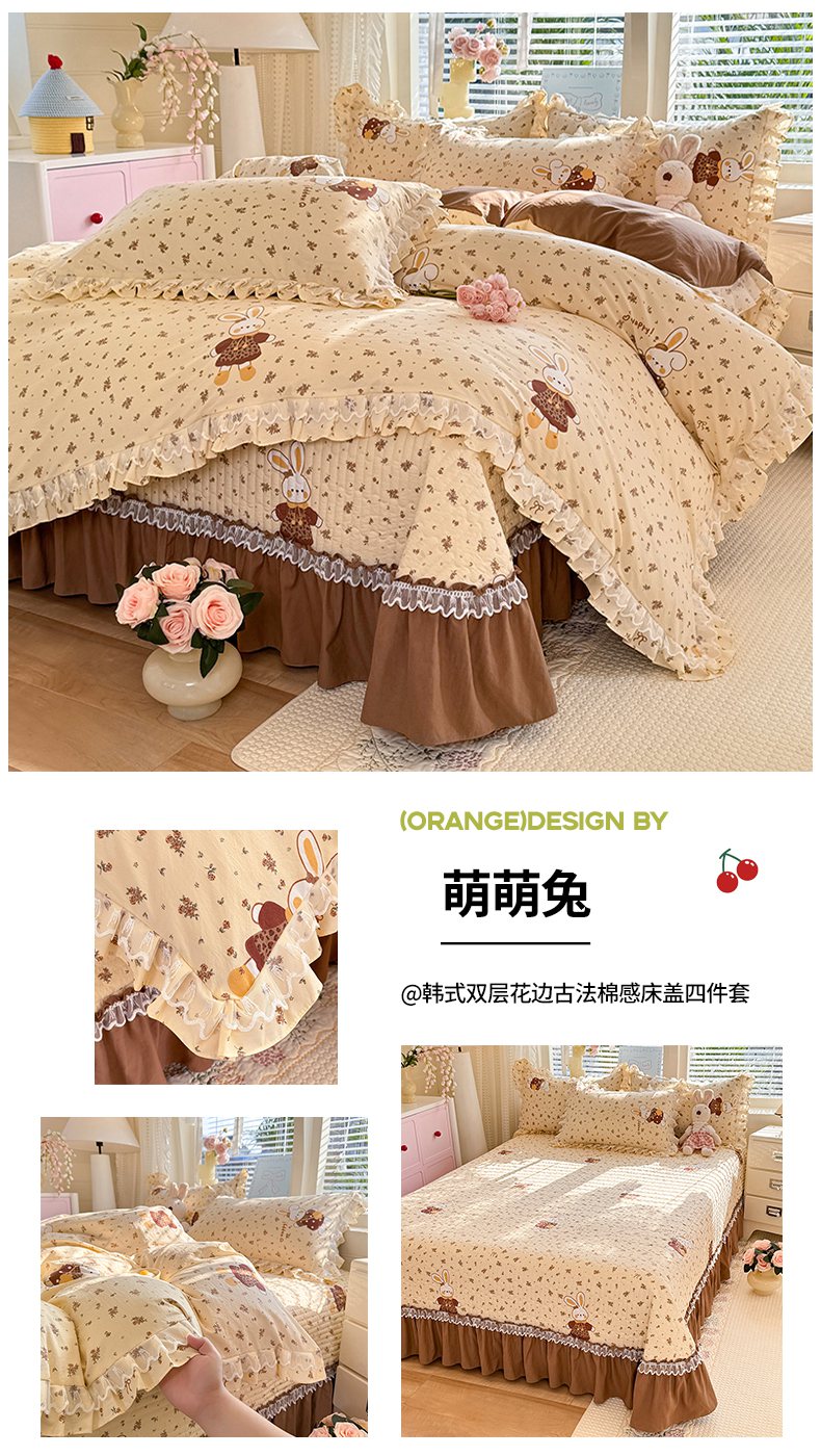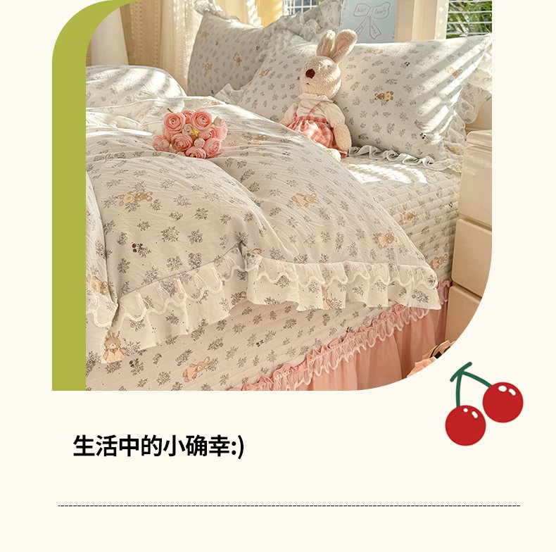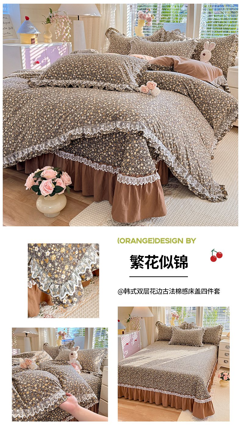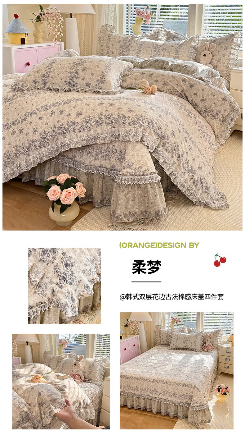 当前位置: 91家纺网 > 商品网购 > 床品套件 > 四件套 > 其它四件套 > 韩约家纺 2026新款韩式双层花边古法棉感床盖四件套 繁花似锦