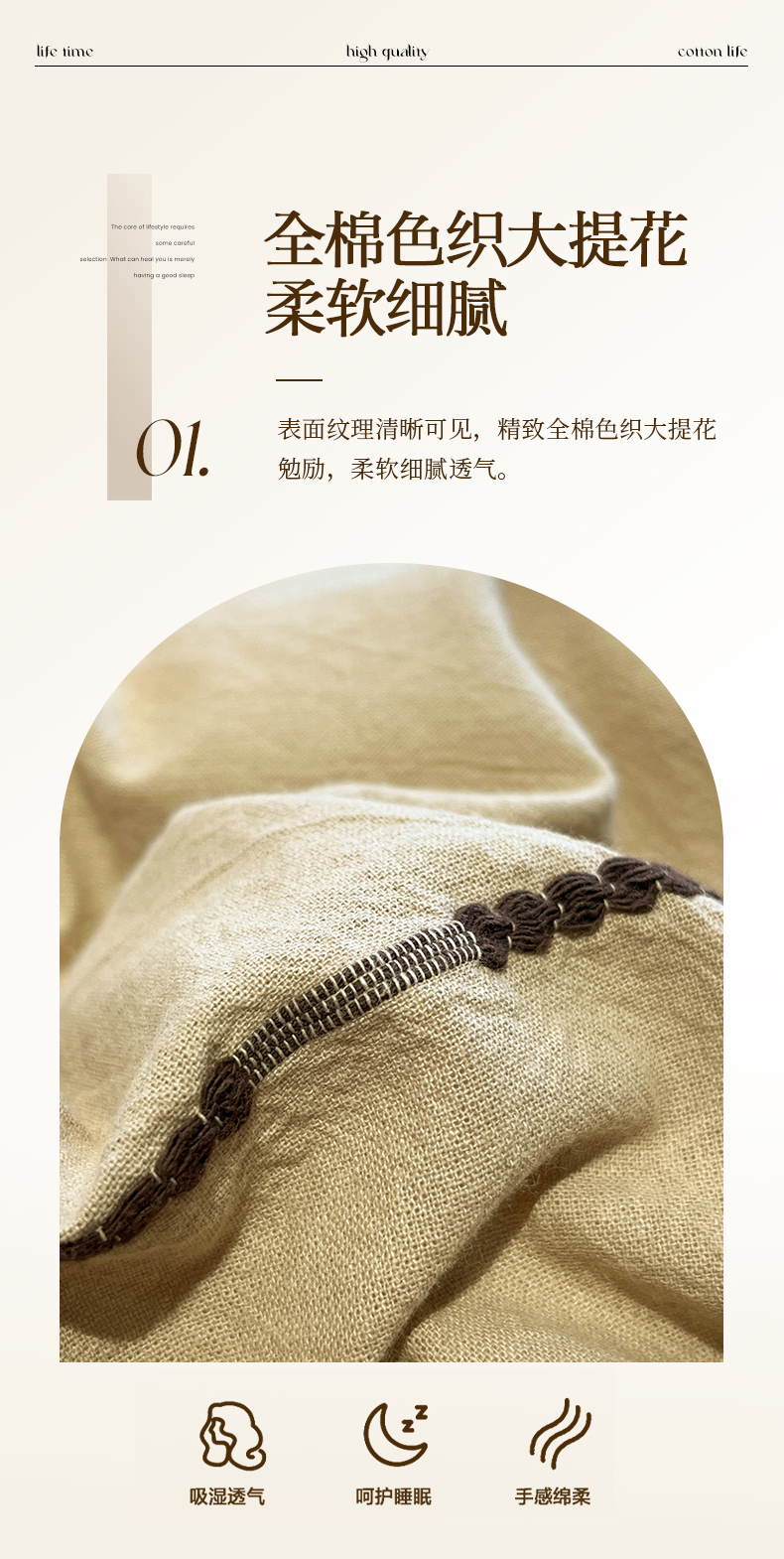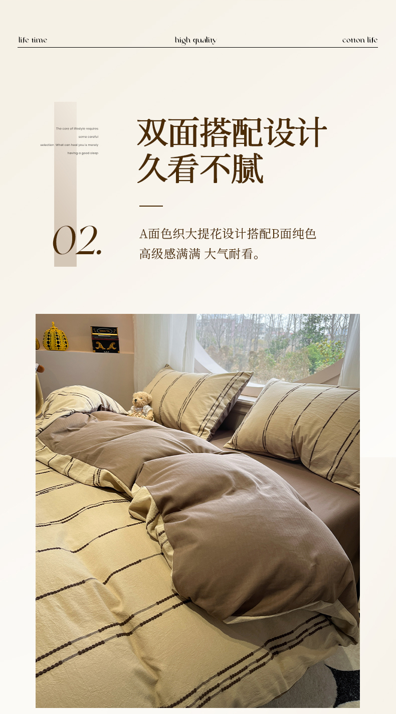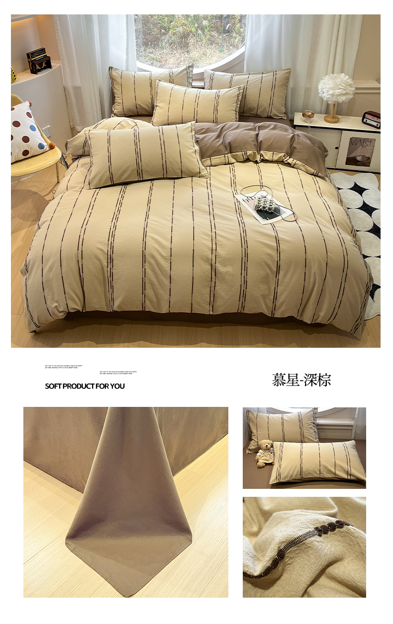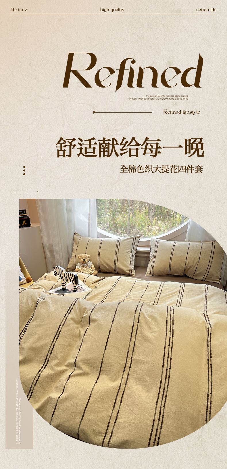 当前位置: 91家纺网 > 商品网购 > 床品套件 > 四件套 > 全棉普通四件套 > 莱茵家居 2026新款A类60支全棉纯棉复古美拉德色织提花四件套-慕星系列 慕星-深棕