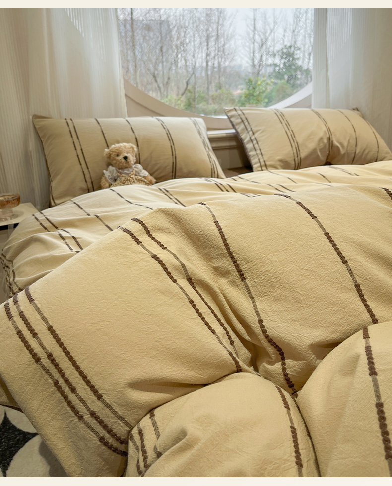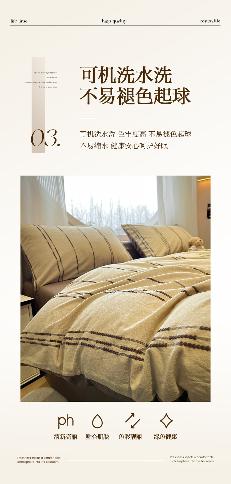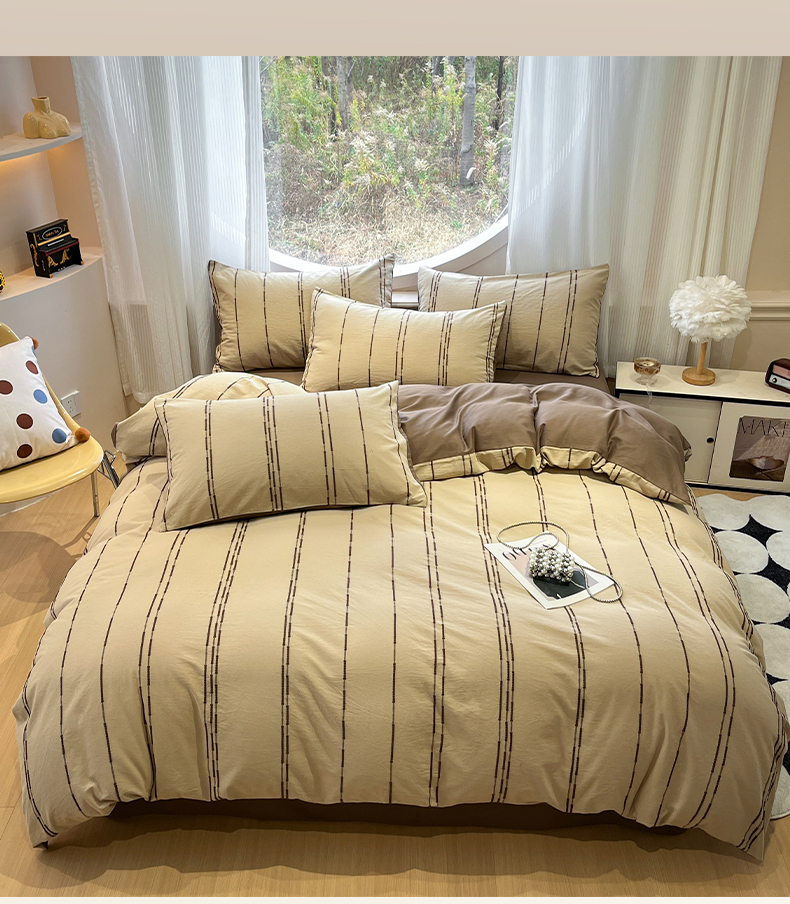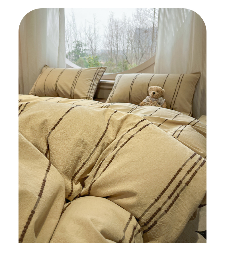 当前位置: 91家纺网 > 商品网购 > 床品套件 > 四件套 > 全棉普通四件套 > 莱茵家居 2026新款A类60支全棉纯棉复古美拉德色织提花四件套-慕星系列 慕星-深棕