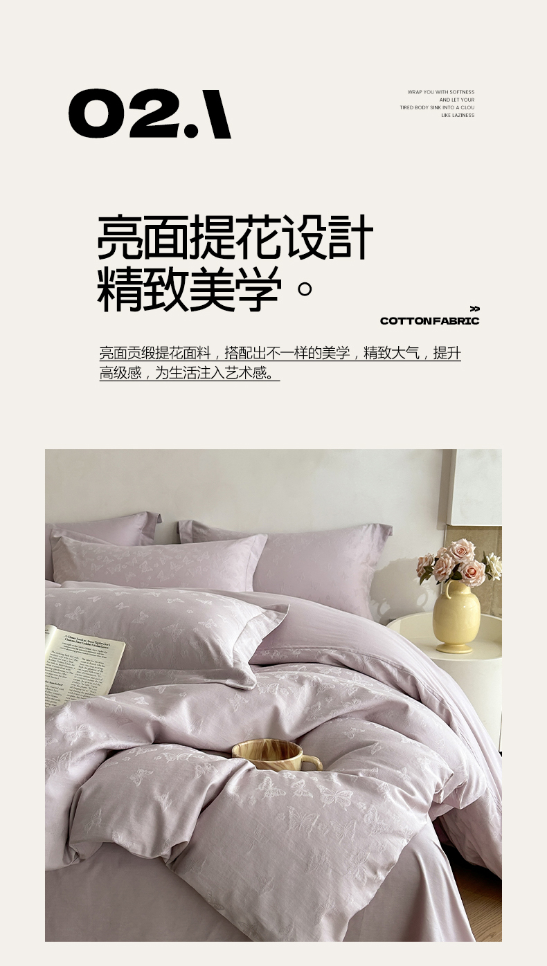 当前位置: 91家纺网 > 商品网购 > 床品套件 > 四件套 > 贡缎全棉四件套 > 莱茵家居 2026新款A类60支长绒棉纯棉提花贡缎大提花四件套光泽绸缎感轻奢风 花漪-紫