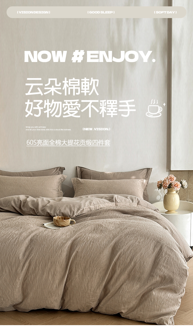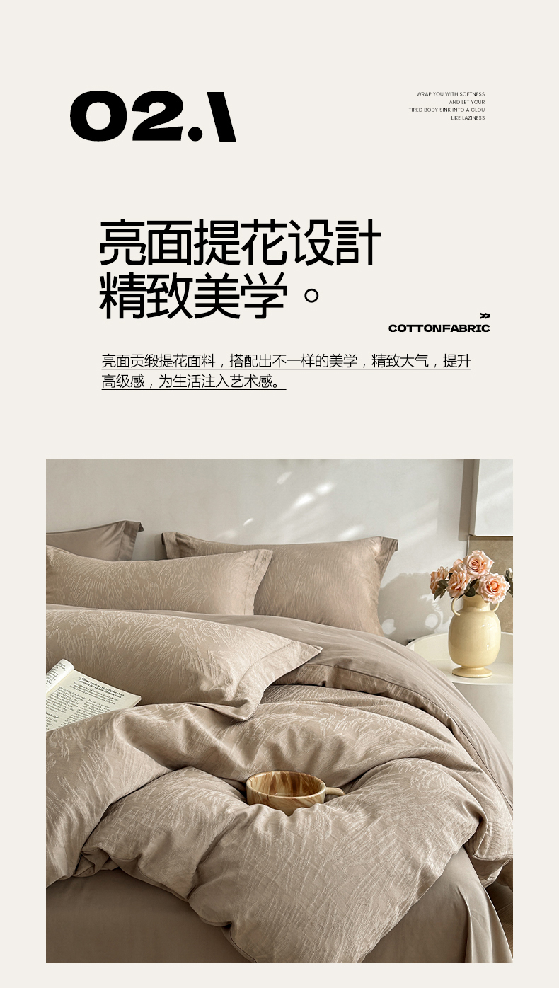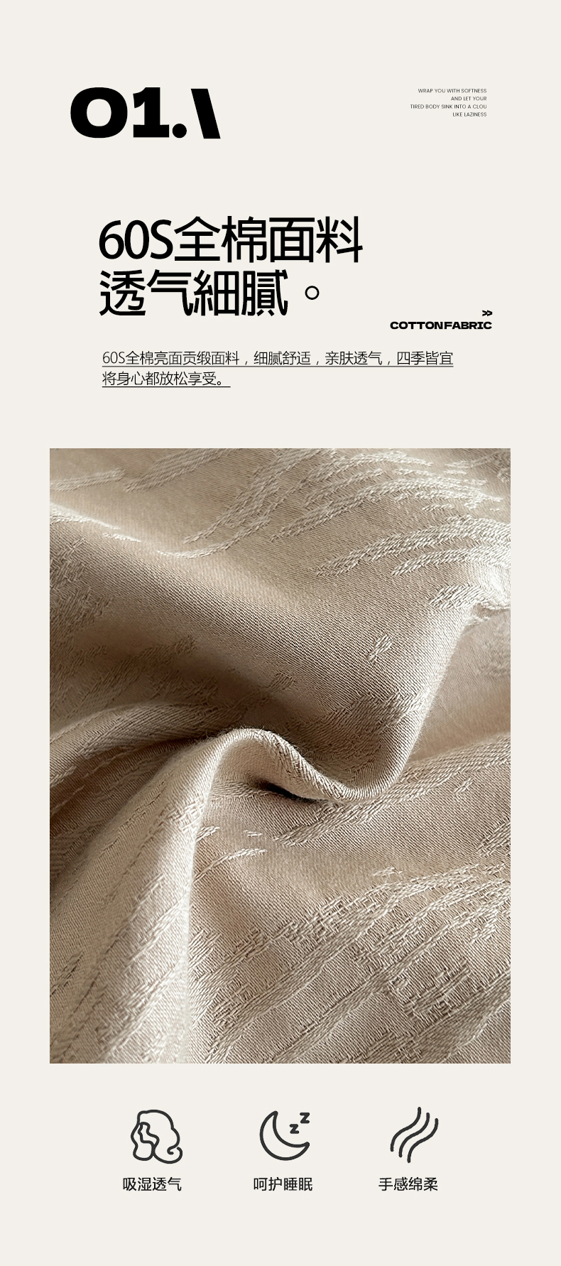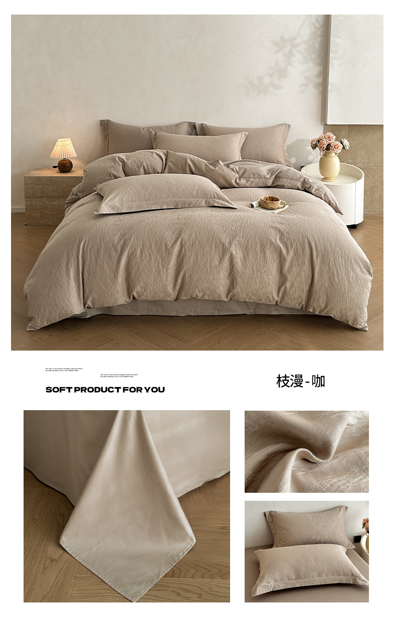 当前位置: 91家纺网 > 商品网购 > 床品套件 > 四件套 > 贡缎全棉四件套 > 莱茵家居 2026新款A类60支长绒棉纯棉提花贡缎大提花四件套光泽绸缎感轻奢风 枝漫-咖