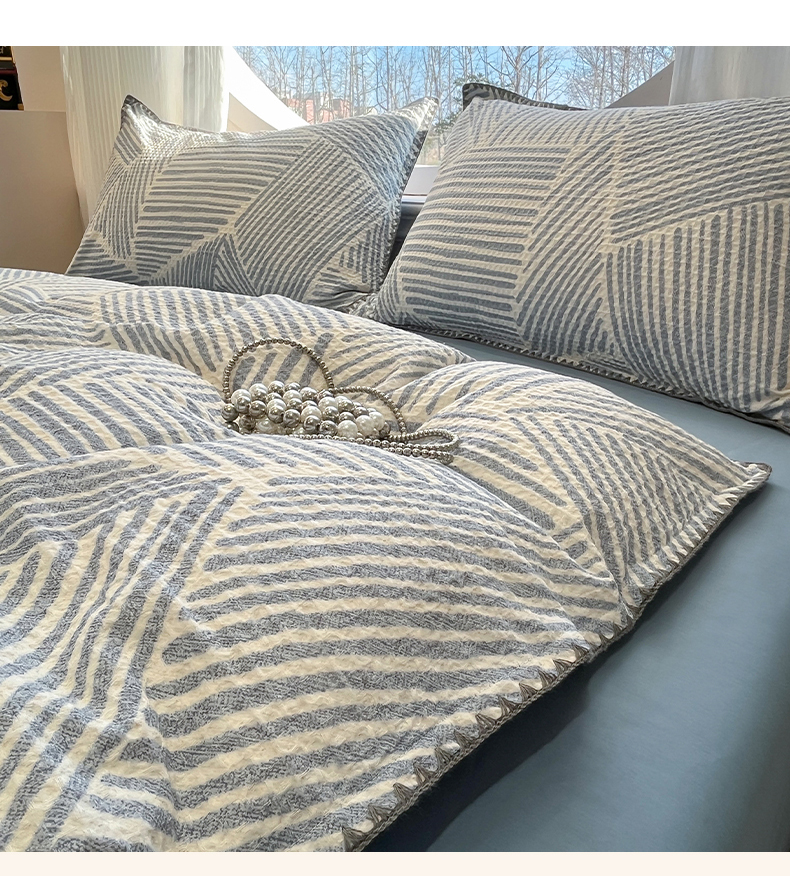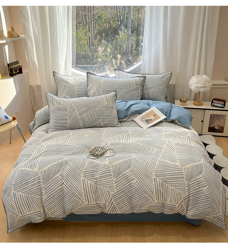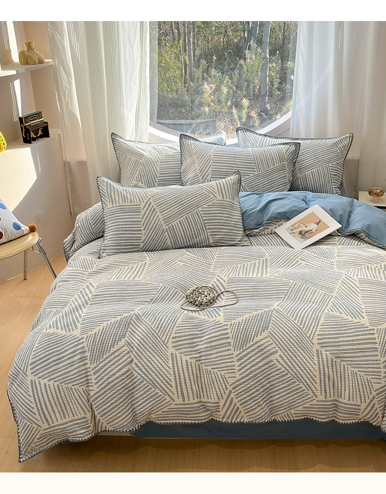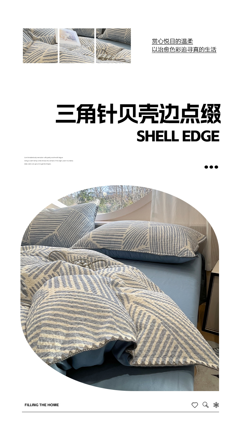 当前位置: 91家纺网 > 商品网购 > 床品套件 > 四件套 > 全棉普通四件套 > 莱茵家居 2026新款A类全棉华夫格印花贝壳边套件-华夫系列 华夫-尼罗蓝