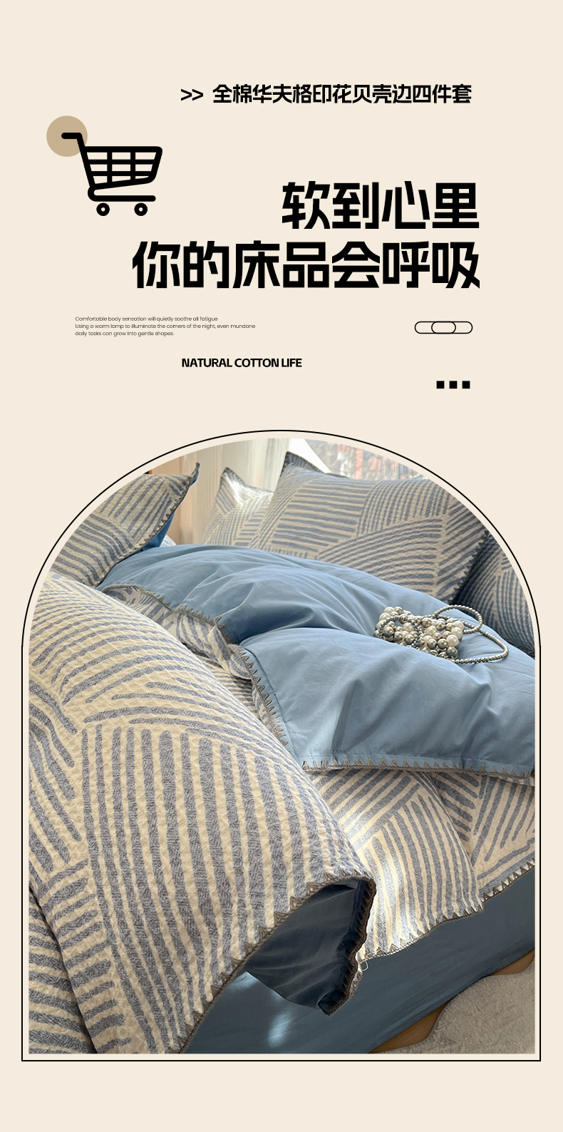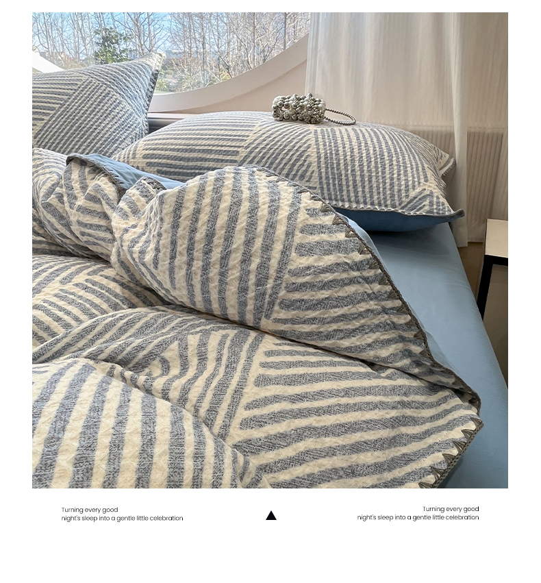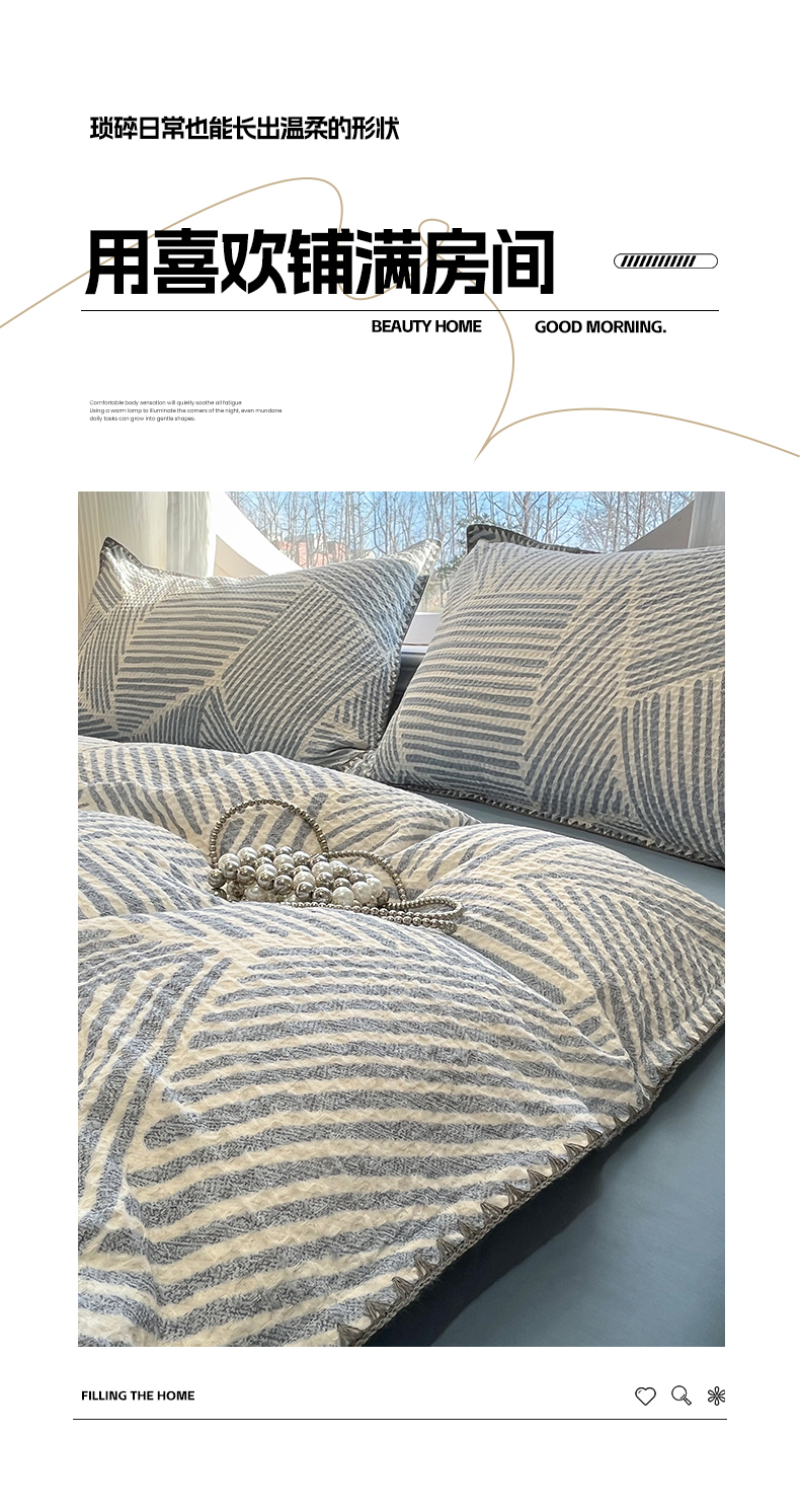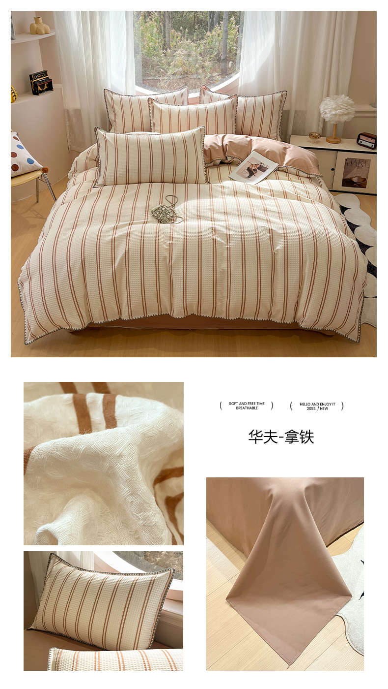 当前位置: 91家纺网 > 商品网购 > 床品套件 > 四件套 > 全棉普通四件套 > 莱茵家居 2026新款A类全棉华夫格印花贝壳边套件-华夫系列 华夫-尼罗蓝